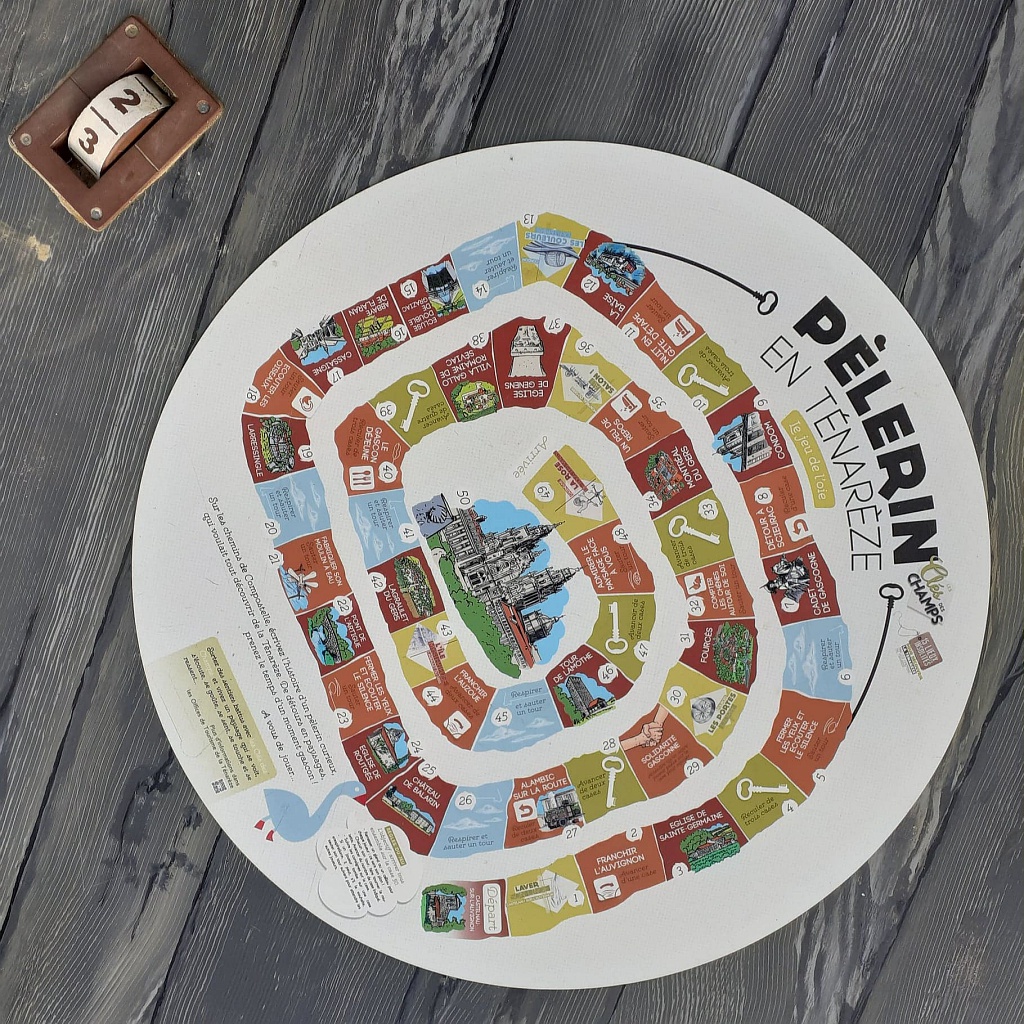 Au pied de mon arbre, sur les chemins de Saint-Jacques-de-Compostelle, il est temps de faire une pause. Pour voir où le vent nous portera ou juste pour une partie du jeu de l'oie.