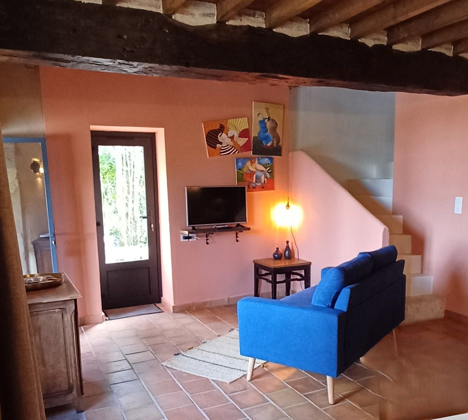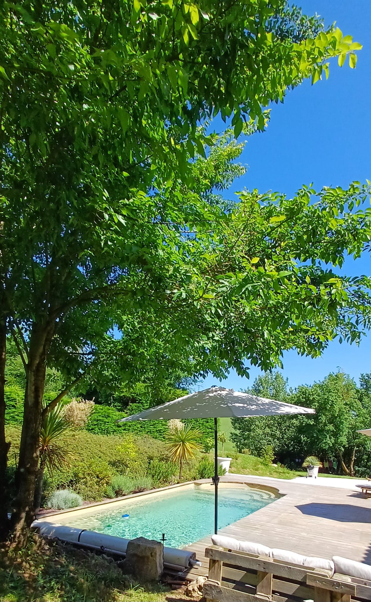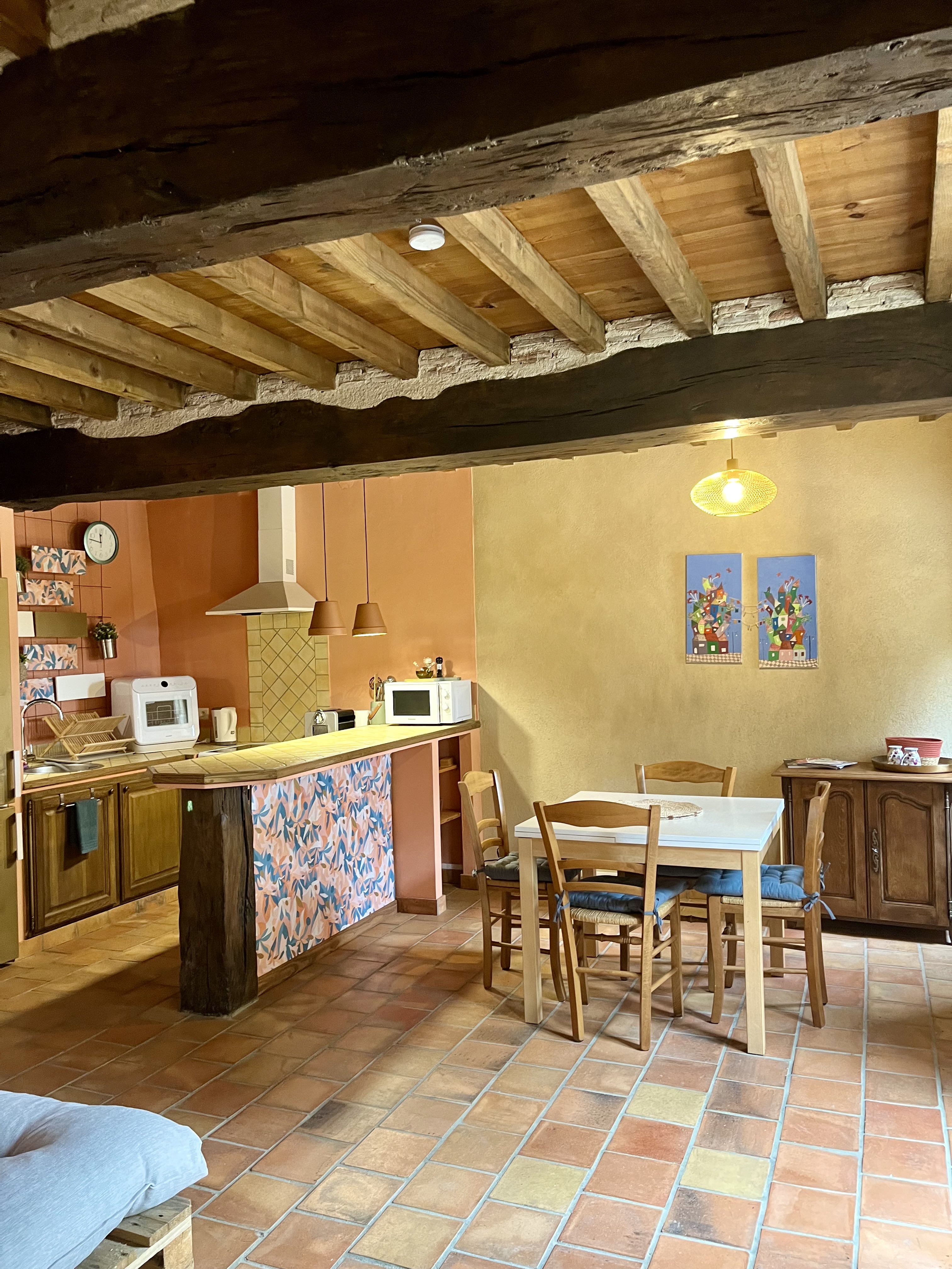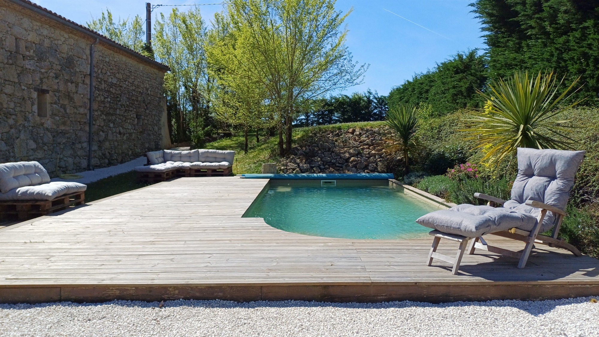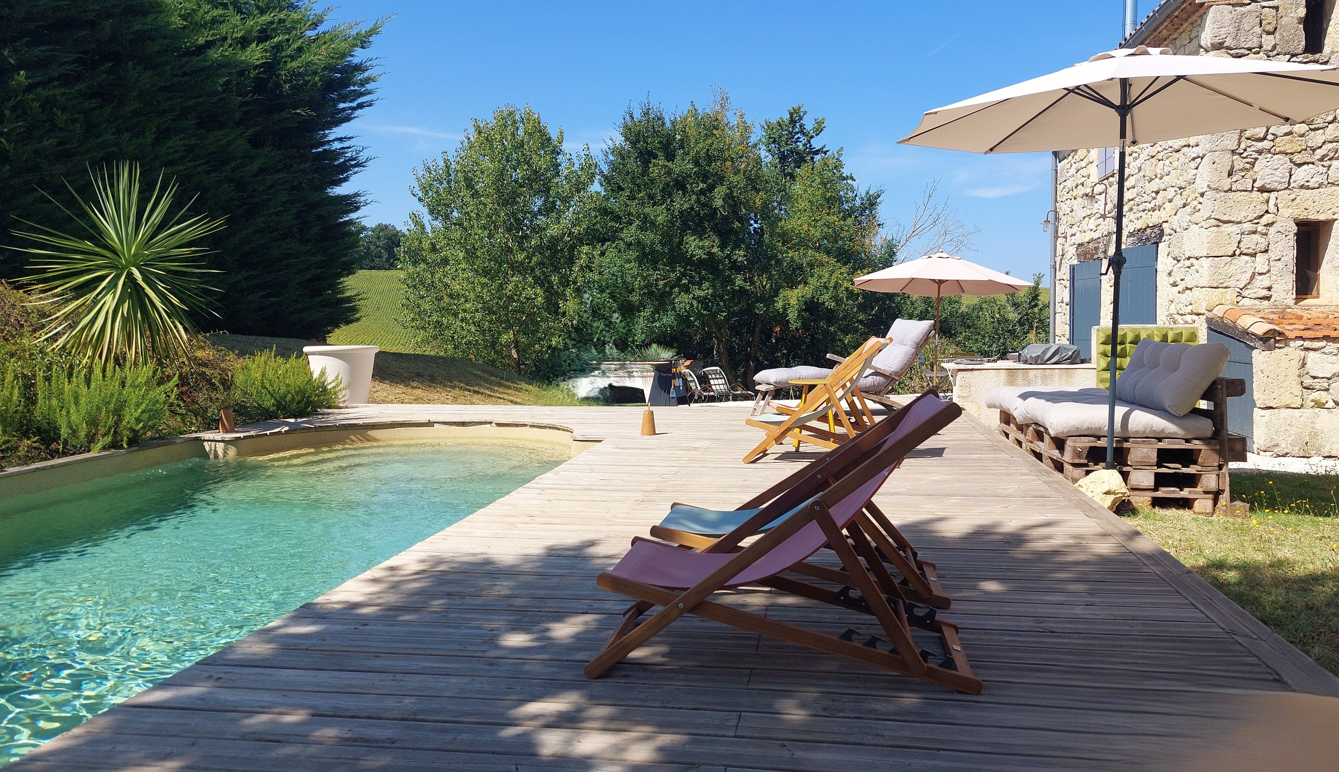 À l'extérieur, terrasse et jardin privatifs vous invitent à vous détendre et à profiter de la tranquillité de la campagne environnante. Accès direct à la piscine partagée (propriétaires et hôtes), depuis votre jardin, parfaite pour se rafraîchir pendant les journées ensoleillées.