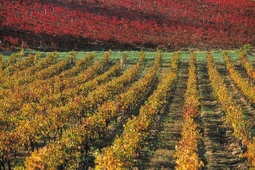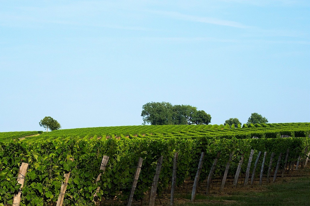 La rondeur des paysages apporte une douceur rehaussée des formes rectilignes des vignes.