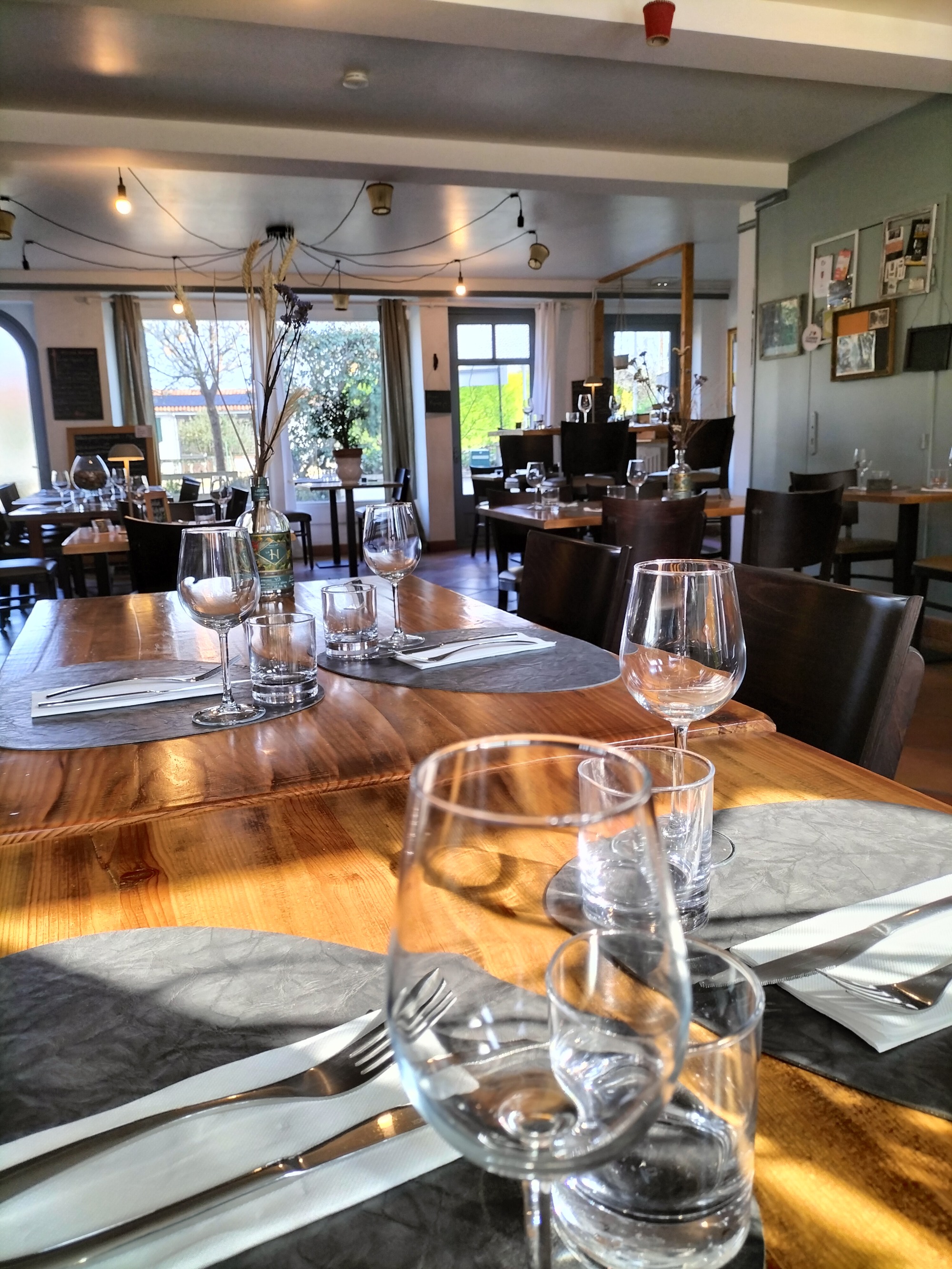 Sur la carte des vins on découvre une gamme de vins de Côtes de Gascogne des domaines voisins de Pellehaut, La Haille, Laxé... mais aussi Saint-Mont, Madiran...