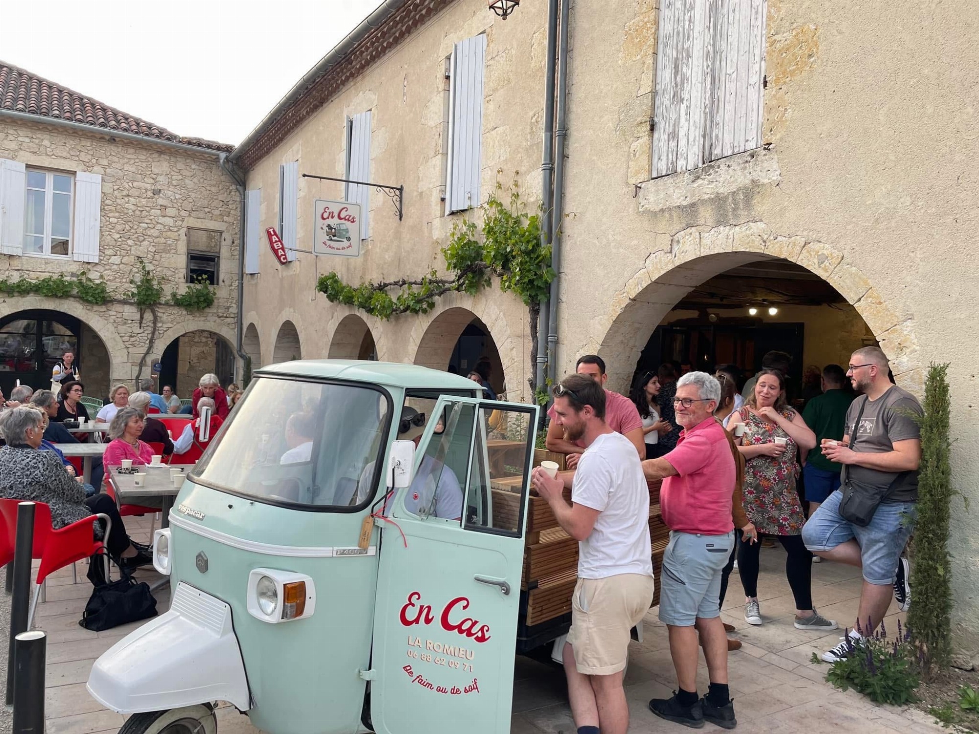 Foccacia, salades, glaces fermières EN CAS de faim ; vins et boissons, EN CAS de soif...
