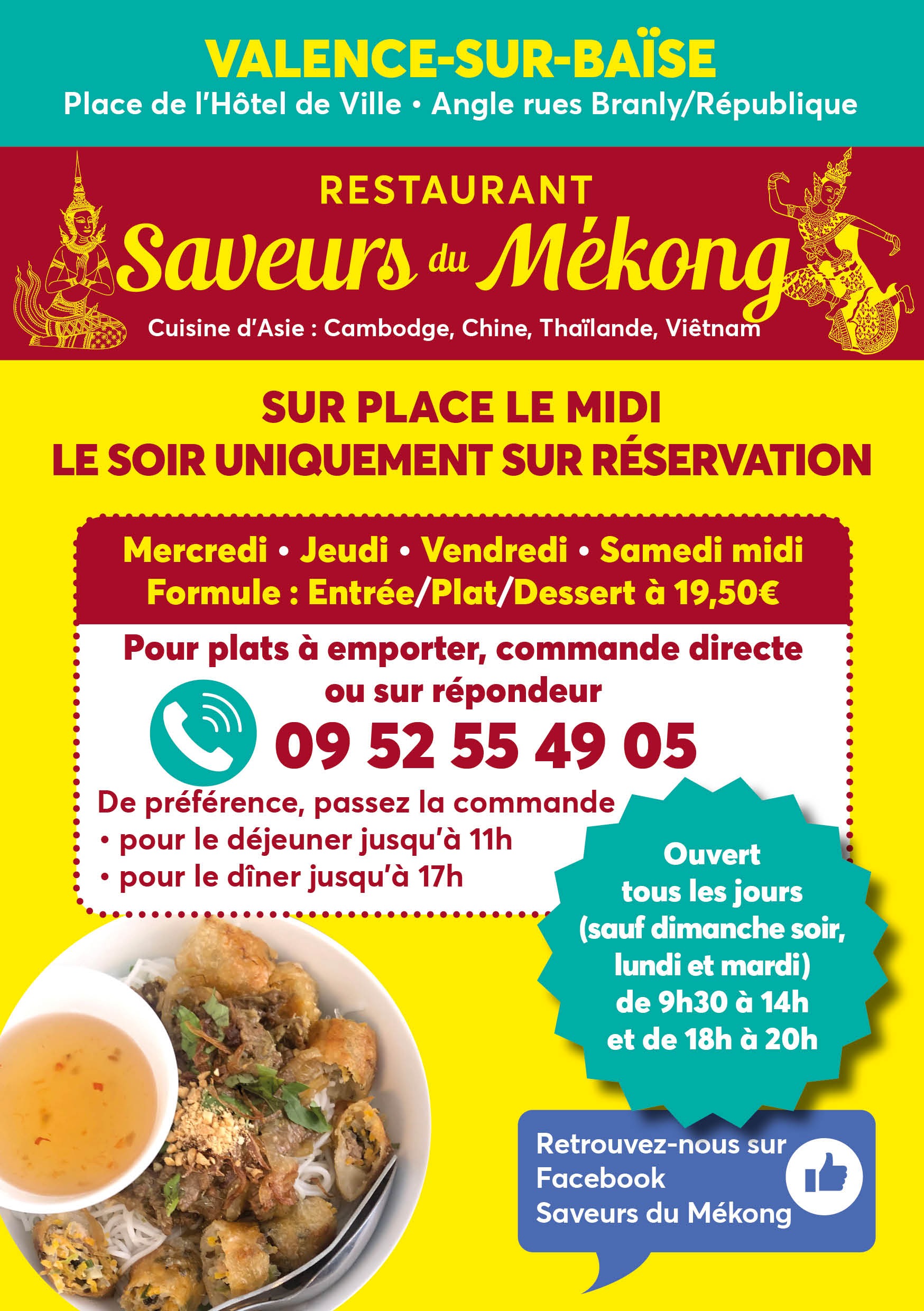 Au cœur de la Bastide de Valence-sur-Baïse souffle un air d'Asie avec les plats sélectionnés de bord de Mékong : Cambodge, Viêtnam, Thaïlande, Chine.