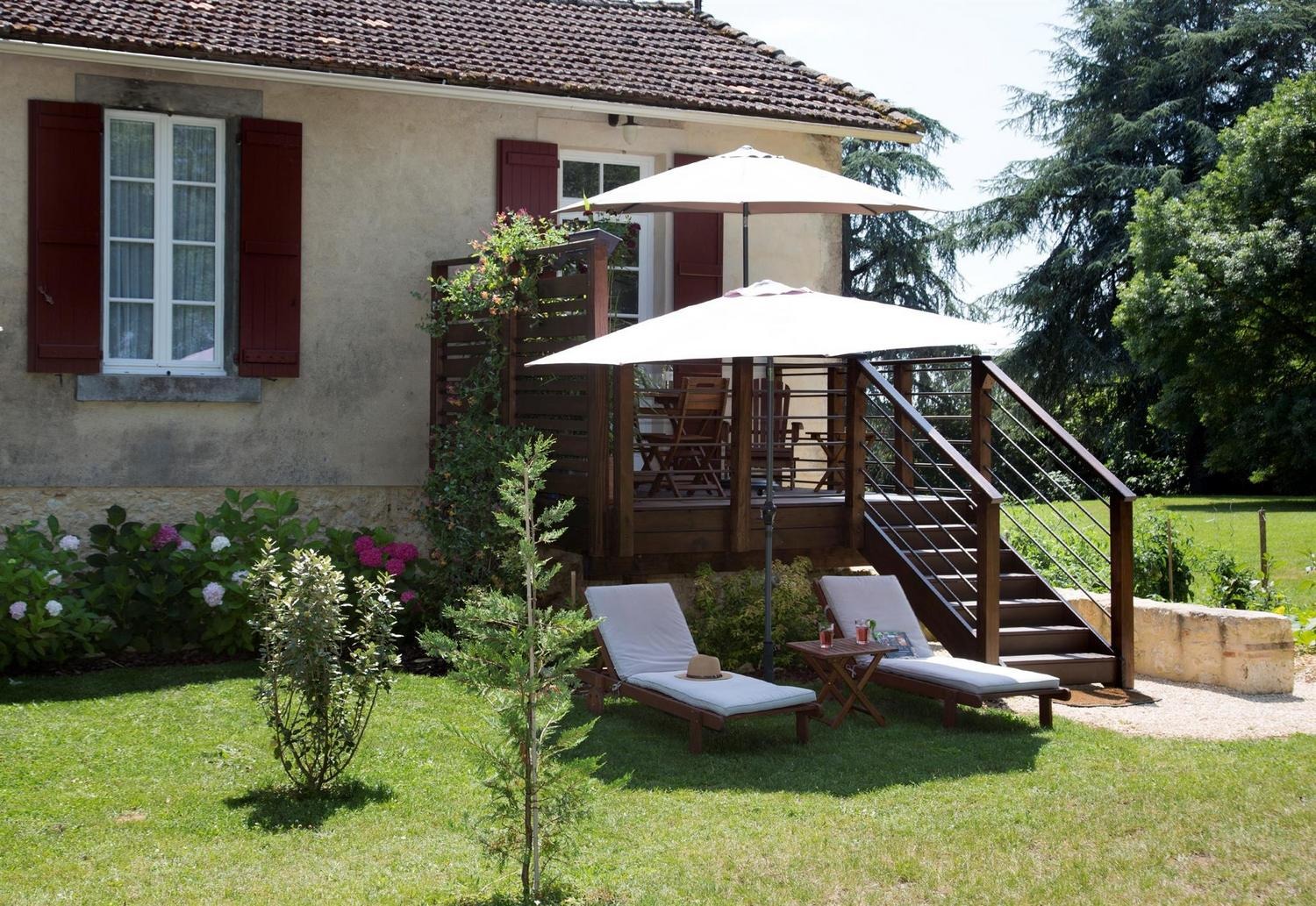 Une très belle terrasse privative en bois (sans vis-à-vis) de 10m² chacune vous permettra d'admirer la campagne gersoise mais aussi la cathédrale de Condom et de très beaux couchers de soleil. Située dans un très beau parc arboré de 3 hectares et agrémenté de beaux parterres de fleurs et rosiers, la propriété est longée par une voie verte : piste cyclable et pédestre de 20km ainsi que d'un sentier rejoignant le chemin de Saint-Jacques-de-Compostelle vous offrant ainsi de nombreuses ballades ! Minimum 2 nuitées.