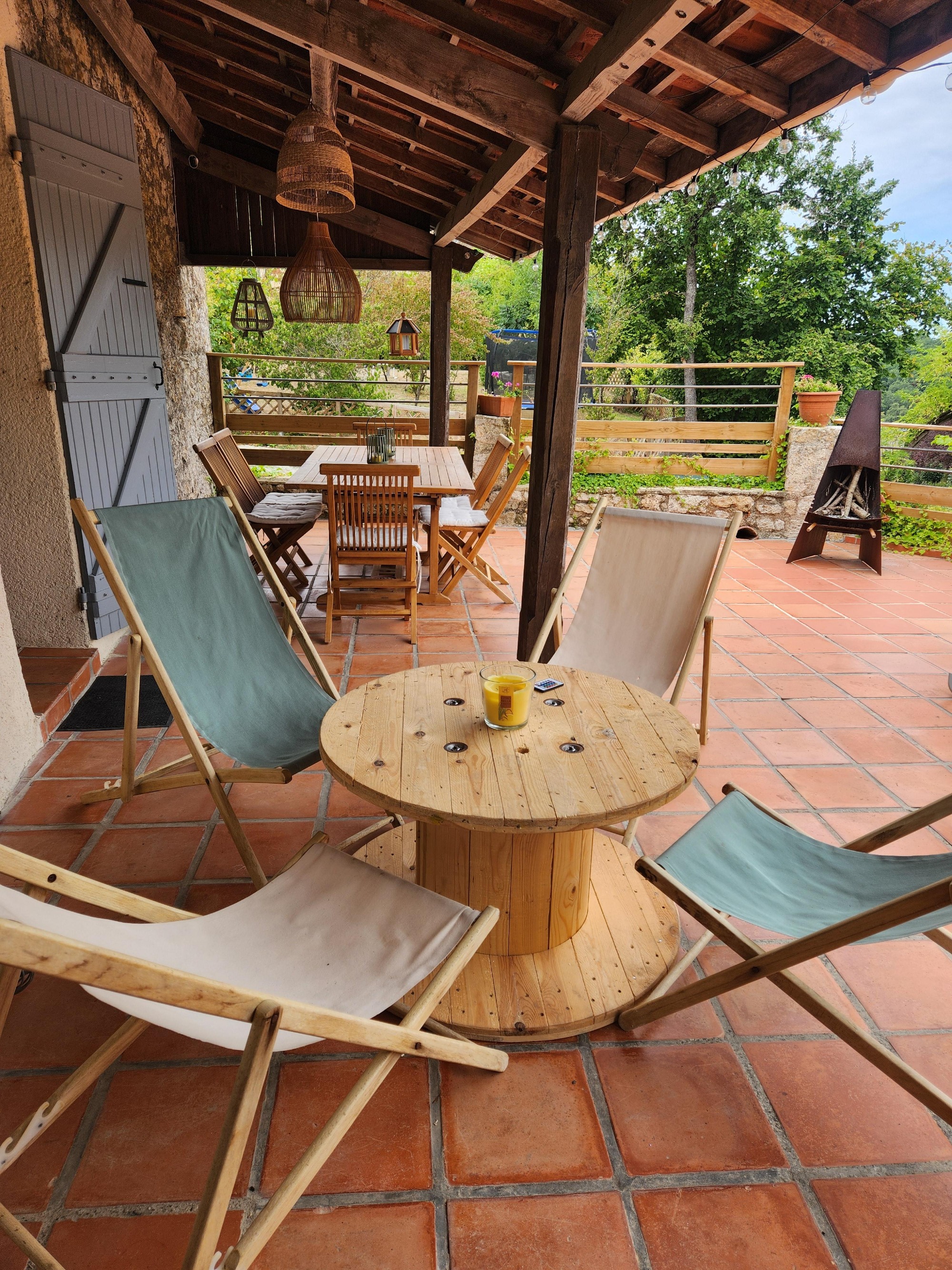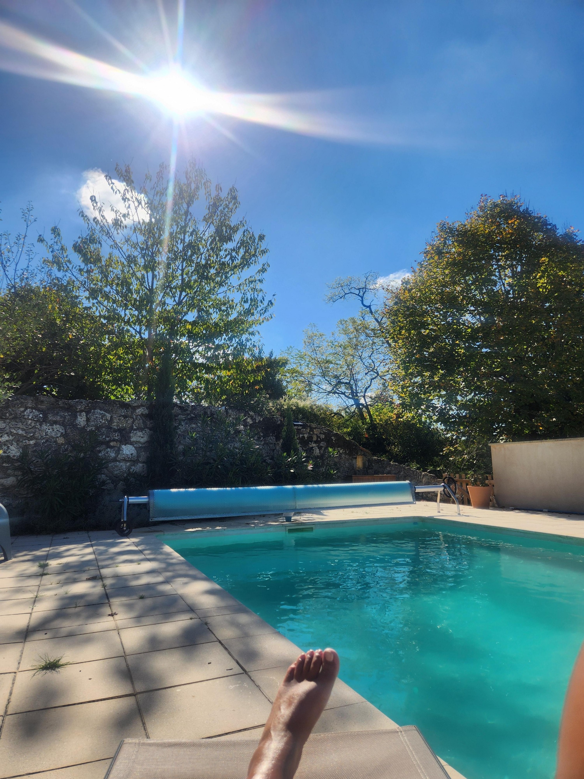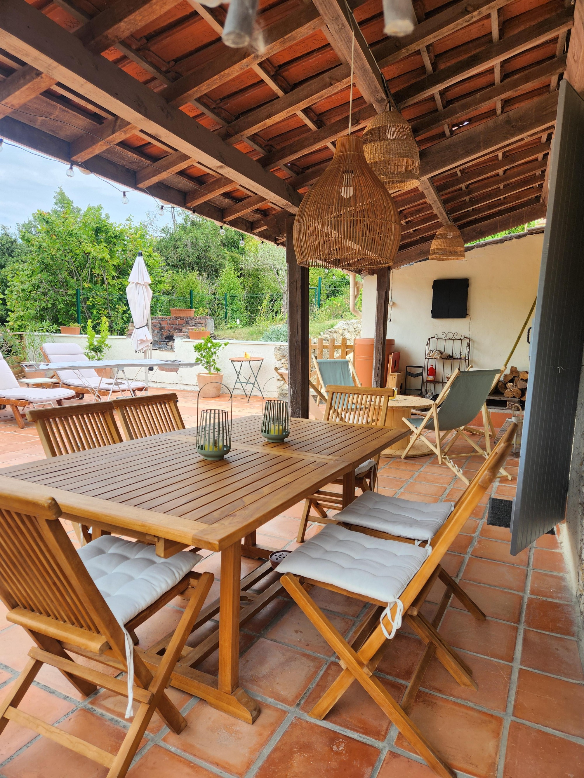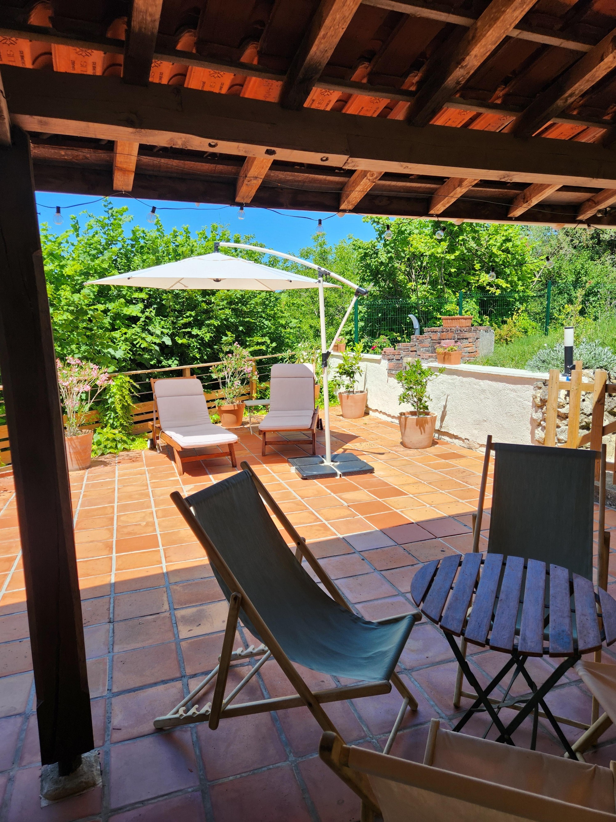 Maison ancienne rénovée avec goût et beaux matériaux, de charme, très belle vue sur les collines, piscine privée, terrasses, à 100 mètres du village.