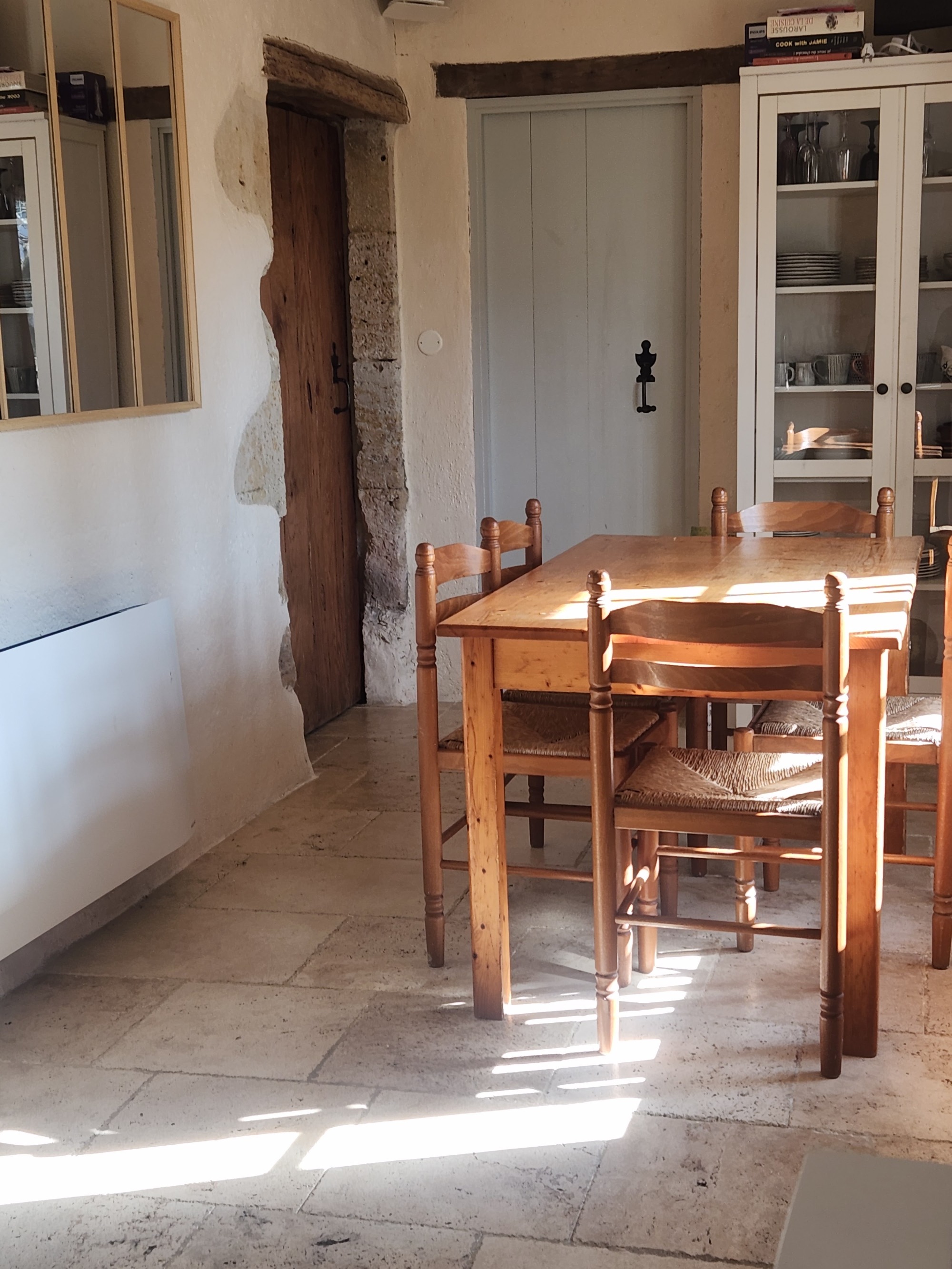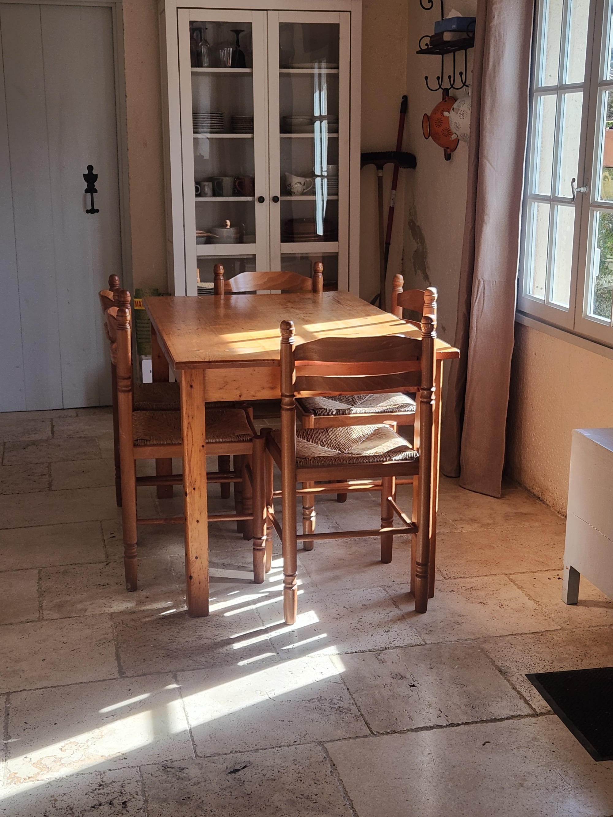 Grande cuisine, salle à manger, grand salon, 2 chambres (1 avec 1 lit 160, la seconde avec 2 lits 90), salle de douche. Grande cave, draps et linge de toilette fournis.