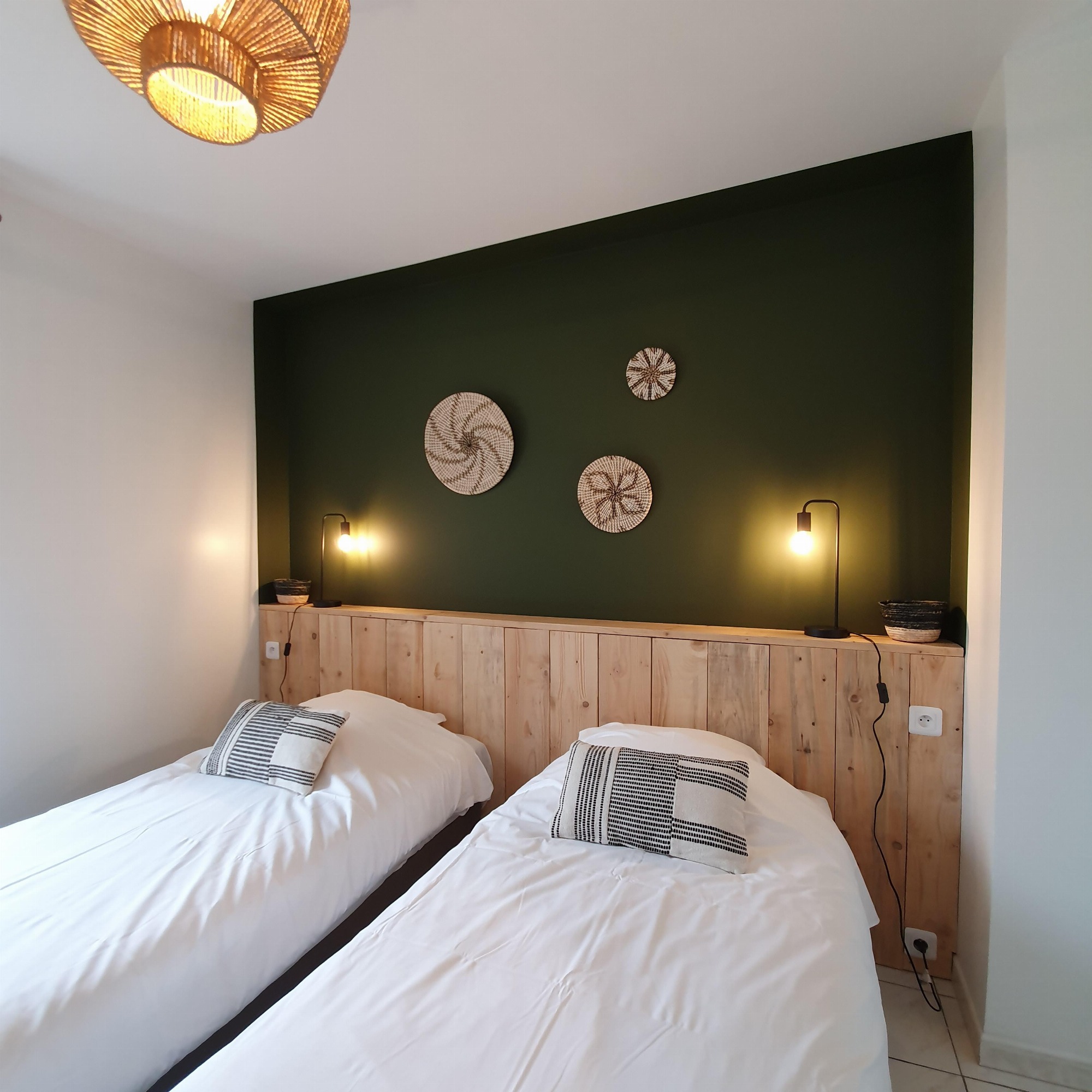 Ce gîte de 70 m² se compose d’un rez-de-chaussée avec son coin salon, son espace salle à manger et une cuisine américaine entièrement équipée. Des wc séparés viennent compléter le RDC. A l’étage, la première chambre dispose d’un lit en 180 x 200 cm (lits twin). La seconde chambre est équipée de 2 lits jumelables en 90 x 200 cm. Une salle de bain avec baignoire/douche et des WC séparés sont également disponibles sur ce niveau.