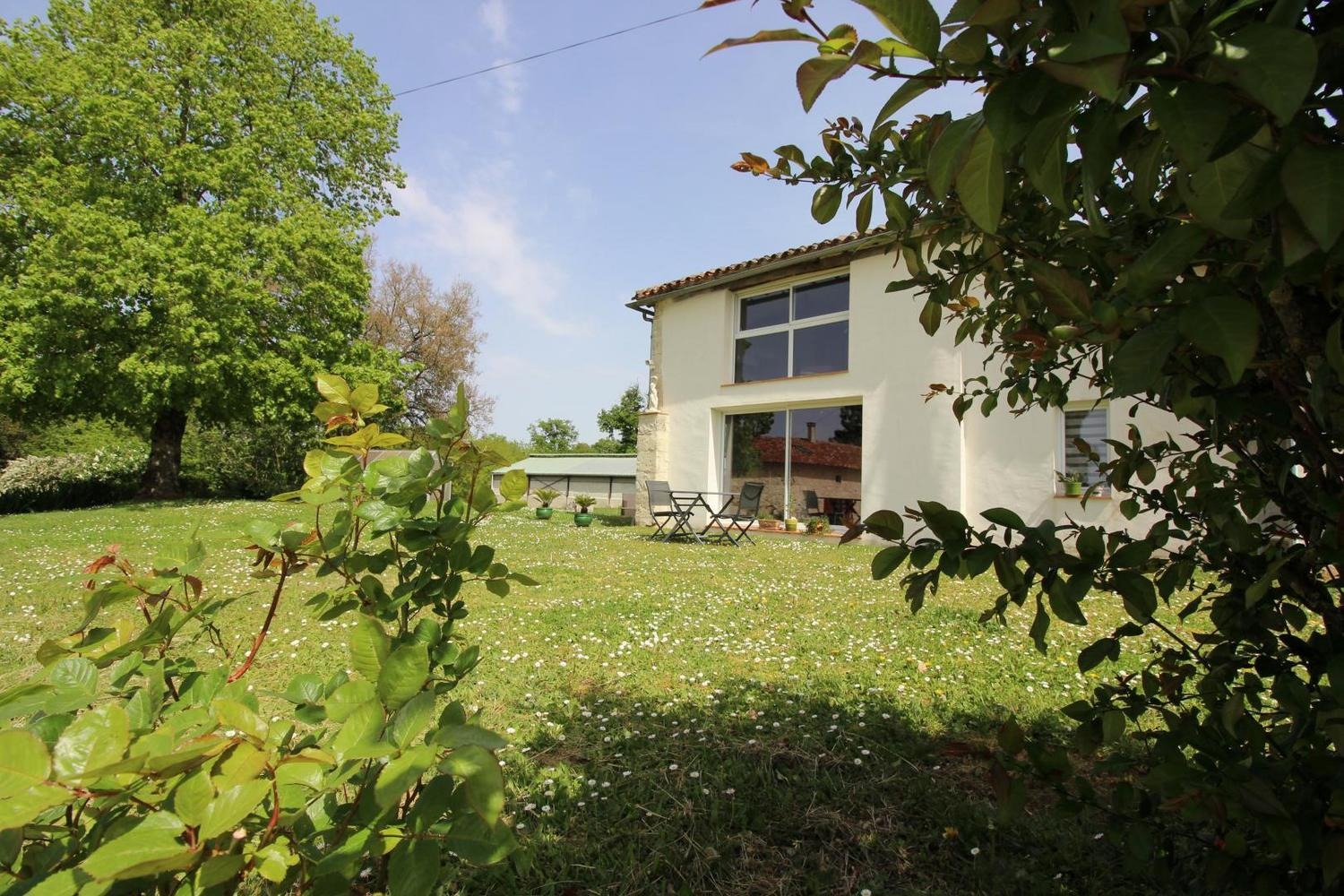Le Nid Aigle est un un petit cocon de 60m² aménagé dans les dépendances de la propriété familiale. Baigné de lumière vous apprécierez la vue sur le jardin, mais aussi la campagne gersoise. Décoré avec beaucoup de goût et équipé de tout le confort nécessaire pour un séjour en toute quiétude. La cuisine ouverte sur un espace vert réservé aux hôtes pour vos repas et pour un petit bain de soleil. Les propriétaires, situés à proximité vous réservent un accueil chaleureux et personnalisé : draps et linge fournis, le lit sera fait à l'arrivée! Pendant votre séjour, votre week-end, ils se feront un plaisir de partager avec vous leur passion pour leur métier : éleveurs de poulets Label, viticulteurs et très attachés à l'agriculture raisonnée. L'exploitation agricole de 100ha offre de nombreux sentiers de promenades et un lac accessible en voiture ou à pied (environ 1km) pour la pêche. Pour les grandes familles, un gîte 6 pers situé à 300m (nous contacter).