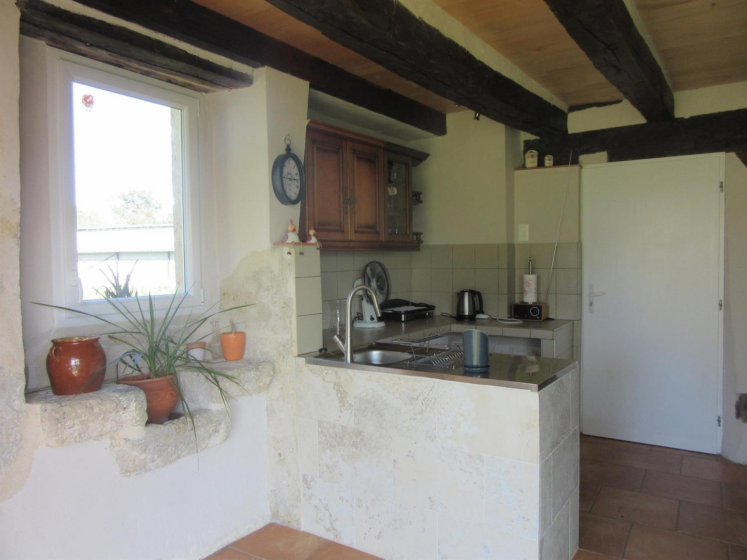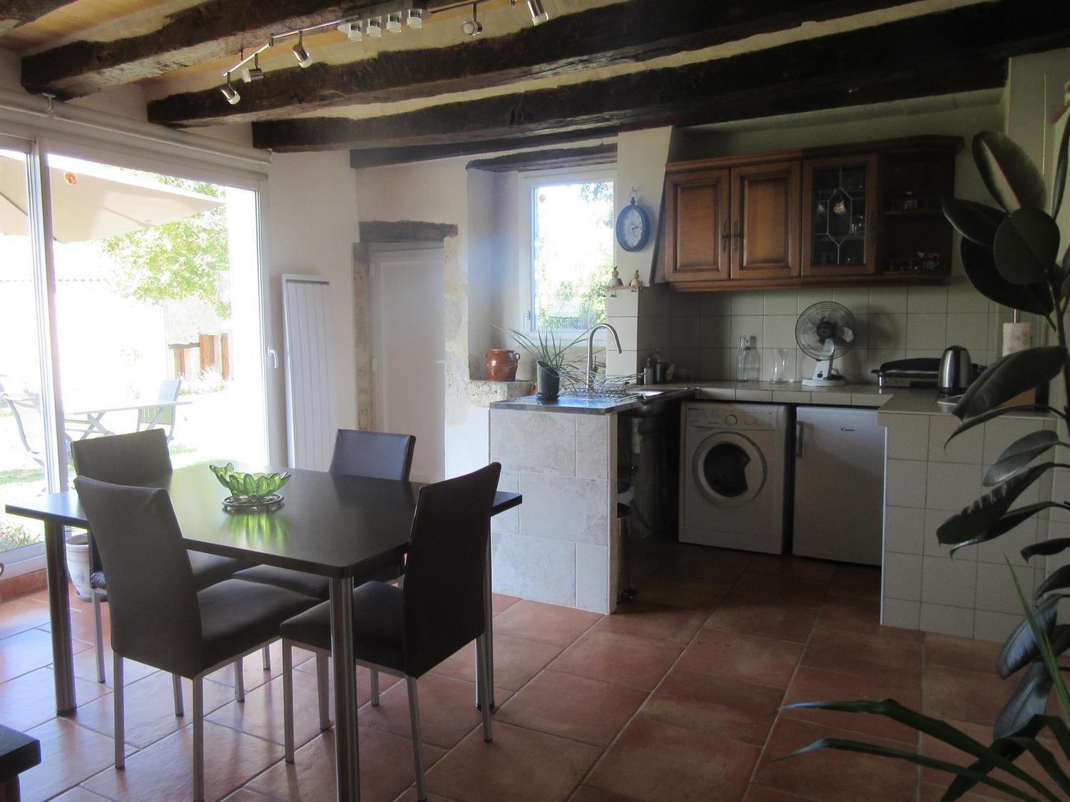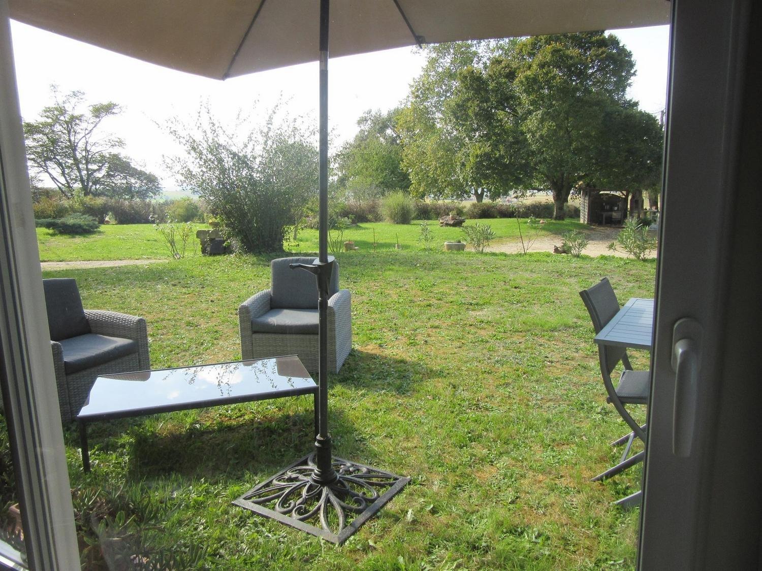 Aménagé dans 60m²: en rez-de-chaussée: hall d'entrée desservant la cuisine/salle à manger avec baie vitrée ouvrant sur terrasse, cellier, salle d'eau, wc. A l'étage, vous disposez d'une chambre avec 1 lit 160, un coin canapé convertible de110/200, TV/DVD, une grande baie vitrée et une vue imprenable sur la campagne. A votre disposition à l'extérieur: salon et table de jardin,2 transats et parasol. Équipement bébé sur demande: lit, chaise et barrières.
