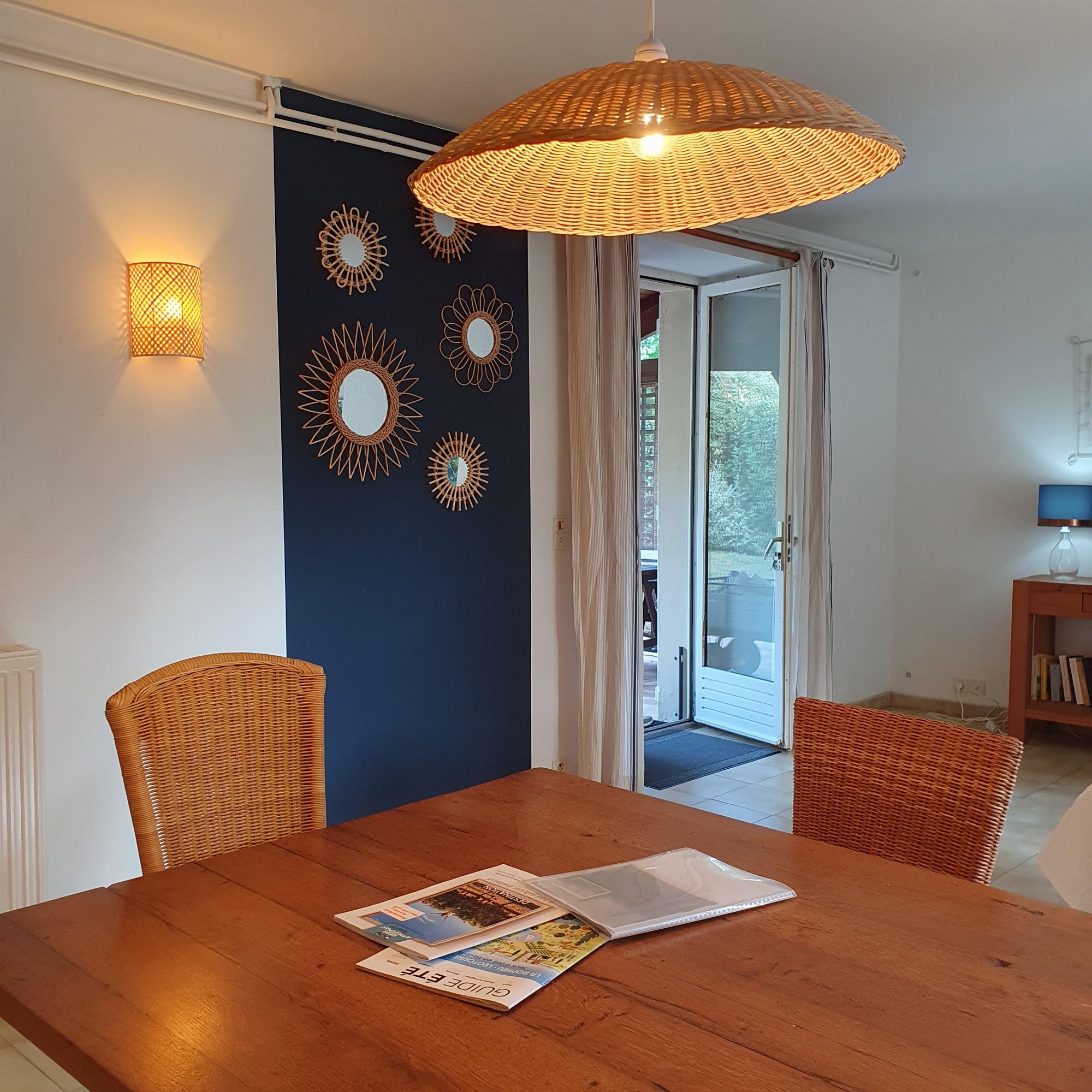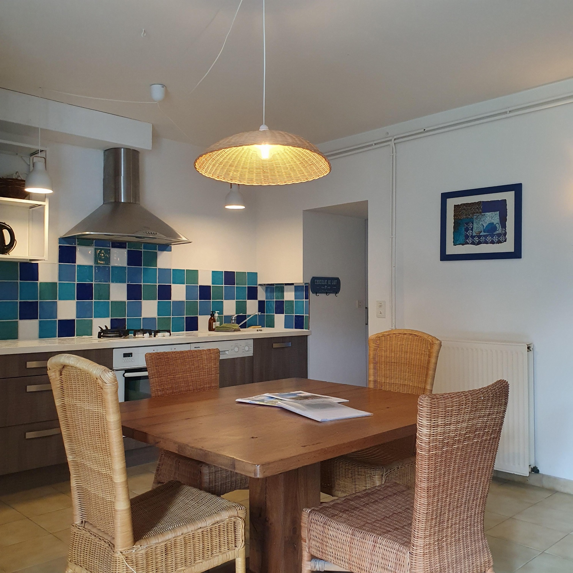 Séjour/coin cuisine, lave vaisselle, wc. A l'étage : 2 ch. (2x2 lits 90 jumelables), salle de bain/wc séparé. Lave-linge privatif.