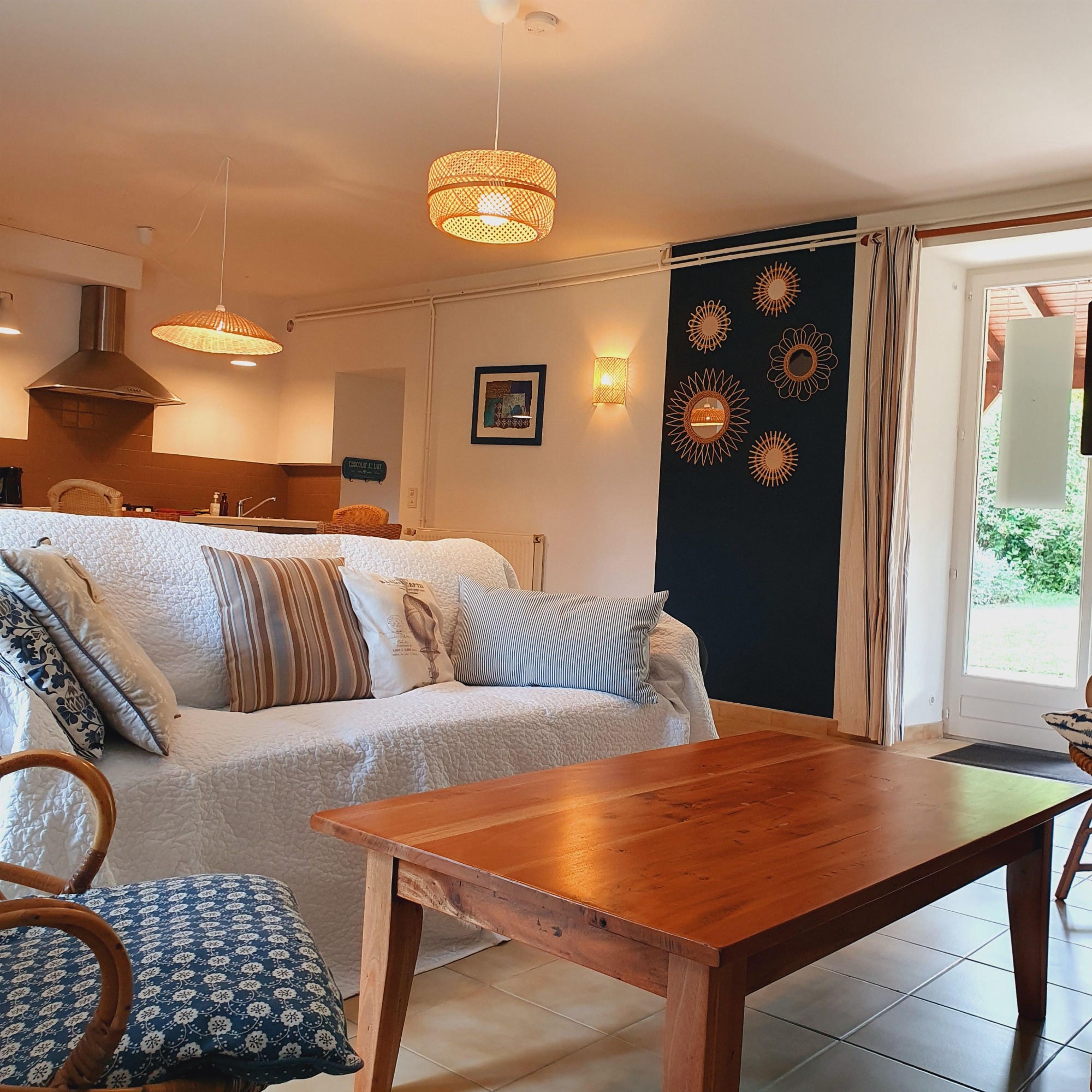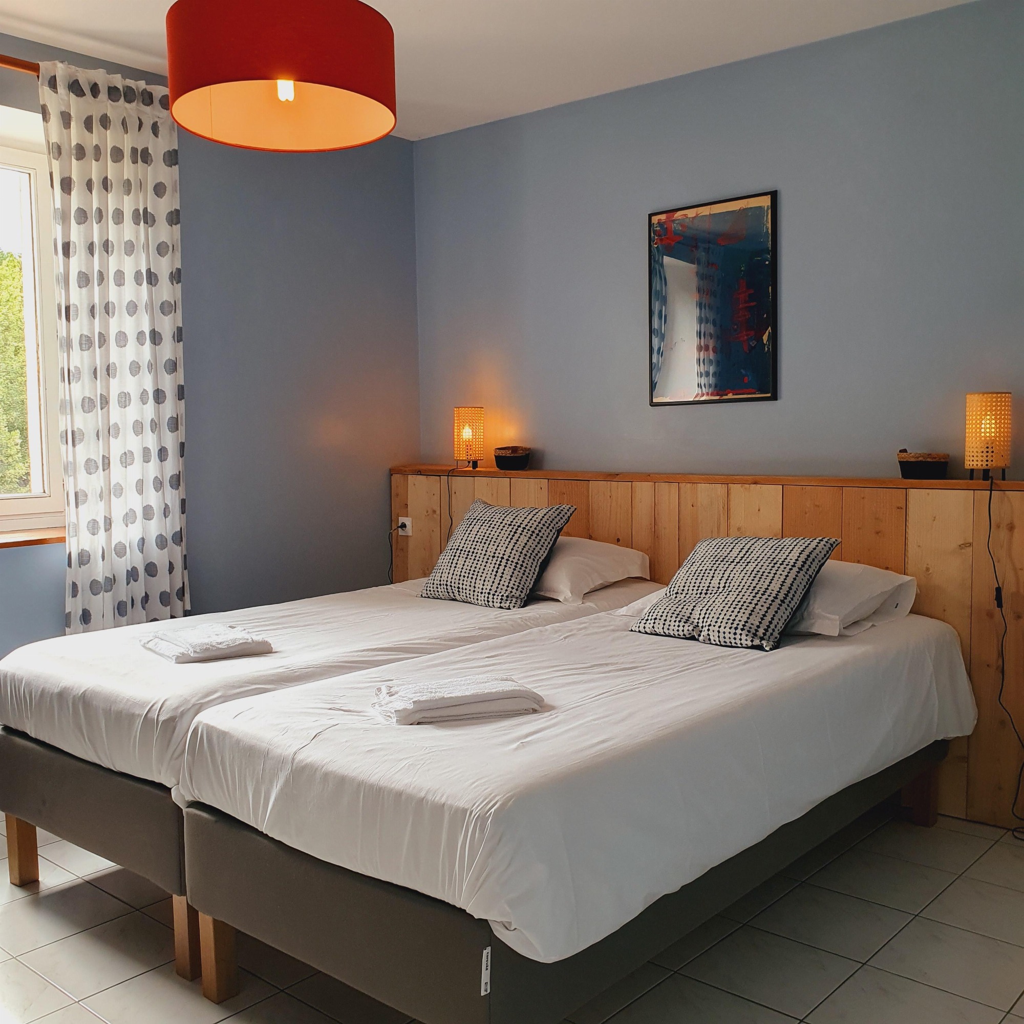 Ce gîte de 70 m² comprend un rez-de-chaussée avec salon, salle à manger, cuisine américaine équipée et WC séparés. À l’étage une chambre avec lit 180x200 cm, une chambre avec lits jumelables 90x200 cm, une salle de bain avec baignoire/douche et WC séparé.