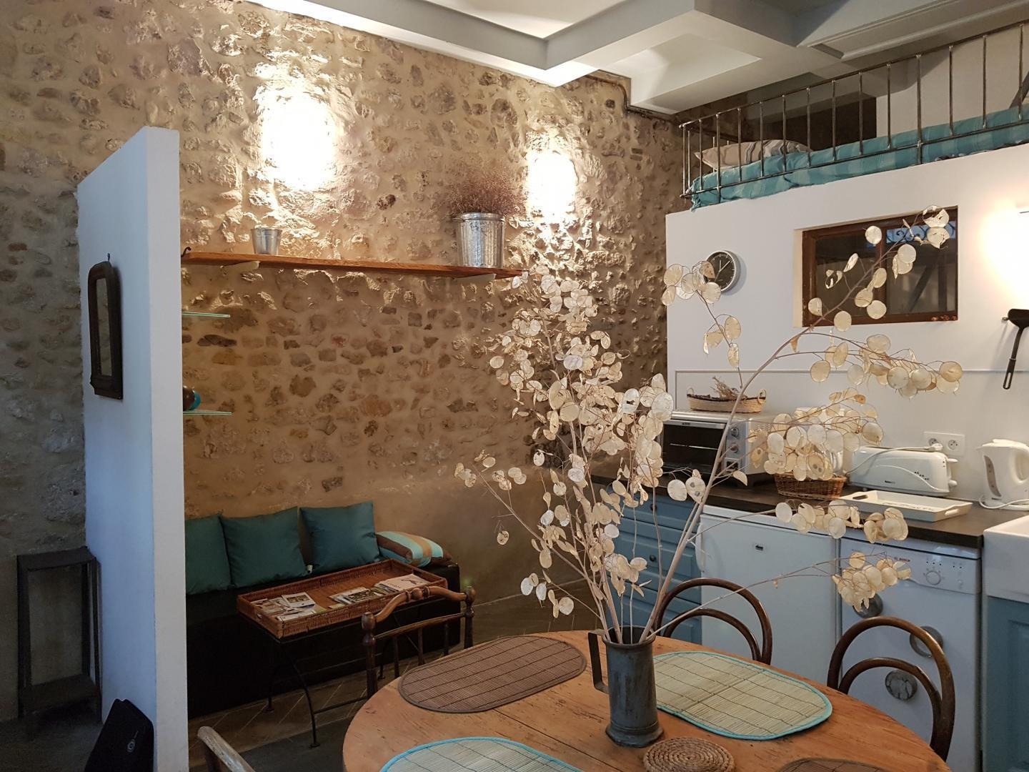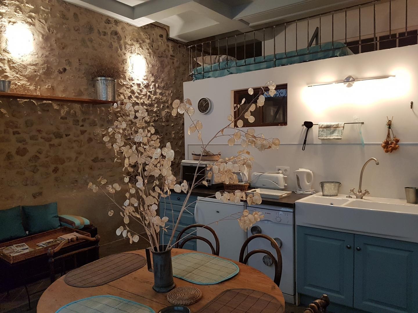 Salle à manger et cuisine ouverte, espace détente, espace nuit avec 1 lit 140 et mezzanine avec 1 lit d'appoint accessible par une échelle meunière, salle d'eau/wc. Petit salon de lecture à disposition.