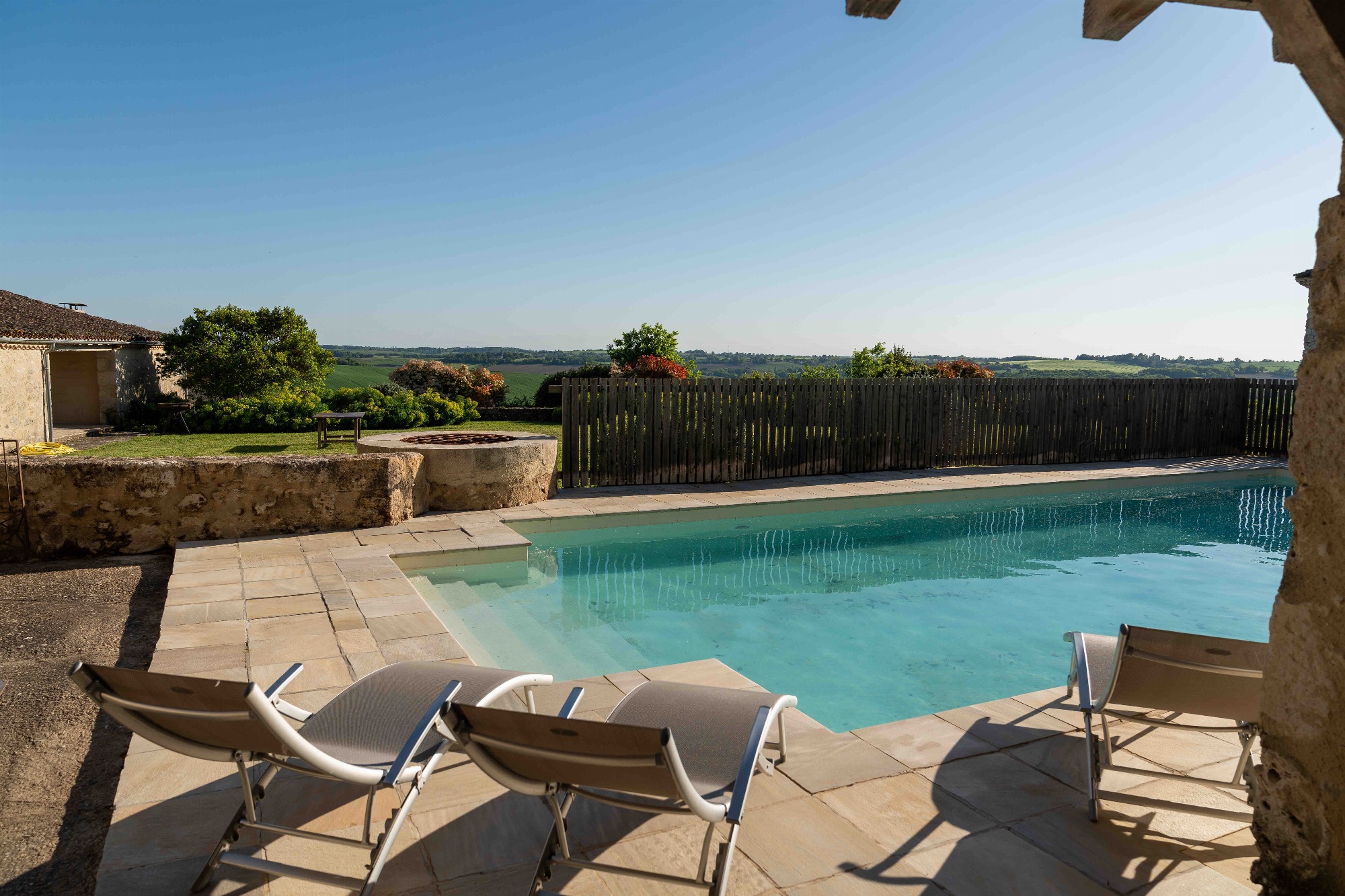 Maison gasconne entièrement restaurée, de caractère, cernée de vieilles pierres, avec un jardin ouvert sur la vallée sud du village. Exposition exceptionnelle, espace piscine panoramique, cheminée pour vos soirées d'hiver. A proximité : tennis et sentiers de randonnées pédestres et VTT, villes de festivals de théâtre et de musiques, de marchés diurnes et nocturnes.
