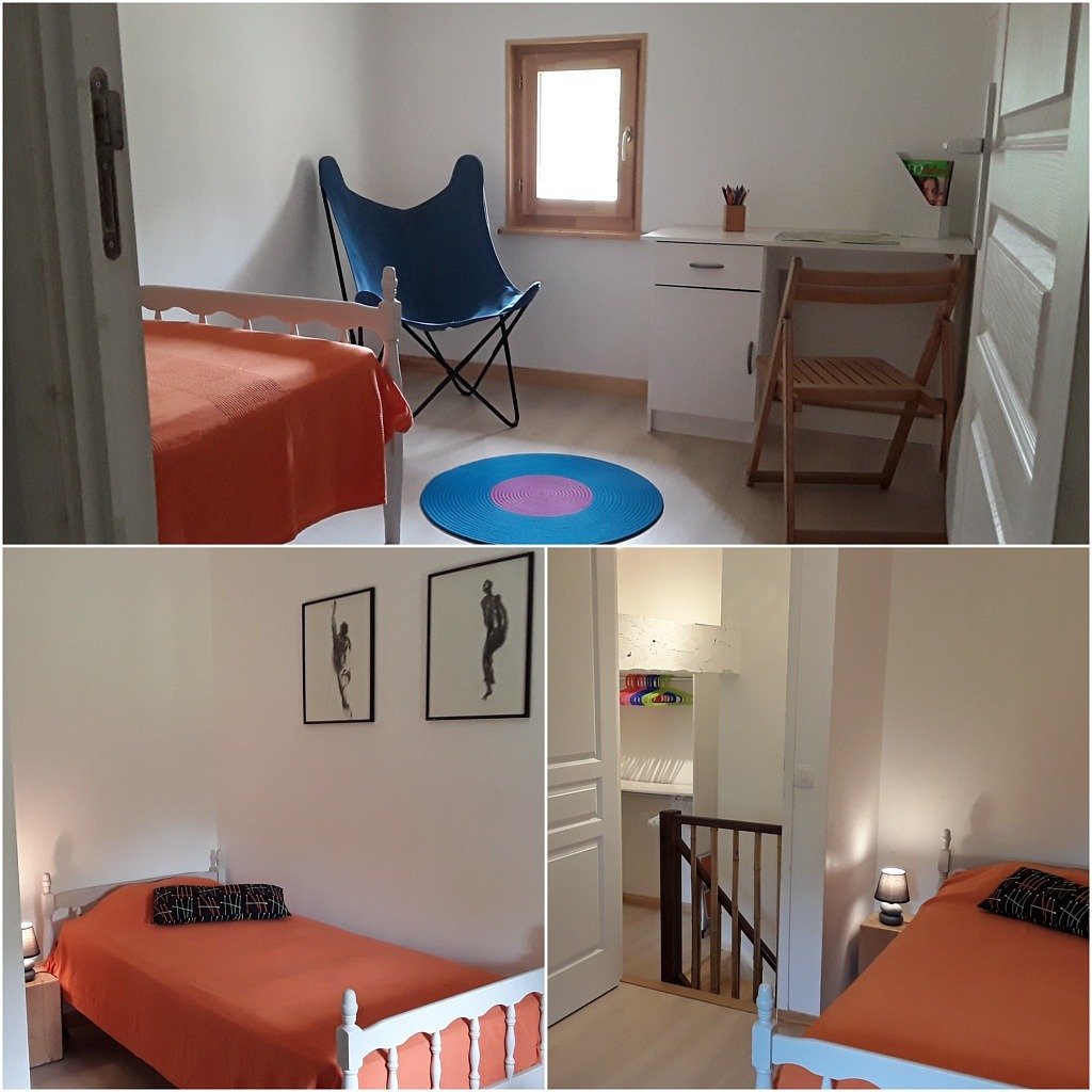 Le Gîte se compose de 3 chambres : 1 chambre parentale avec lit double au rez-de-chaussée et 2 chambres d'enfants avec lit simple à l'étage.