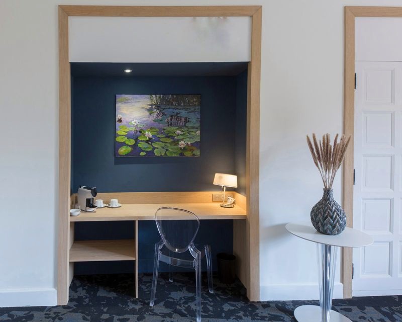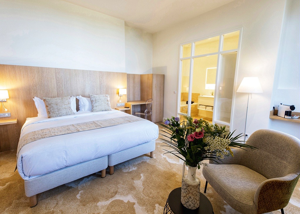 Le mobilier en bois naturel a été réalisé sur mesure pour l’harmonie des lieux et le plus grand confort de ses occupants. Les matériaux nobles ont été soigneusement sélectionnés afin de rendre hommage à l’authenticité des lieux. Cet hommage perdure jusque dans la dénomination des chambres qui retrace l’Histoire du Château des Fousseries au travers des noms de quelques-uns de ses propriétaires au cours des siècles.