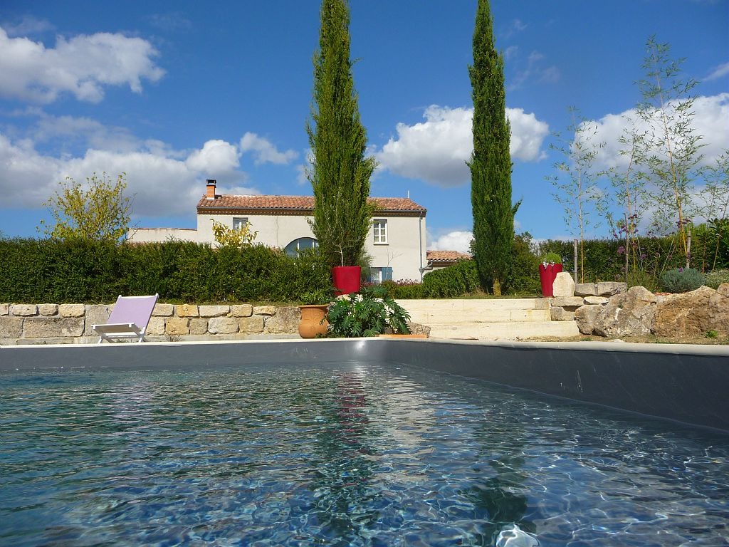 La maison s’ouvre sur un vaste parc arboré permettant de camper dans un cadre naturel, avec une belle vue panoramique sur la vallée de l’Auvignon. Les terrasses couvertes, la pergola, la piscine et les espaces extérieurs offrent de multiples lieux de détente. Un parking est mis à disposition, avec la possibilité de laisser son véhicule le temps du voyage.