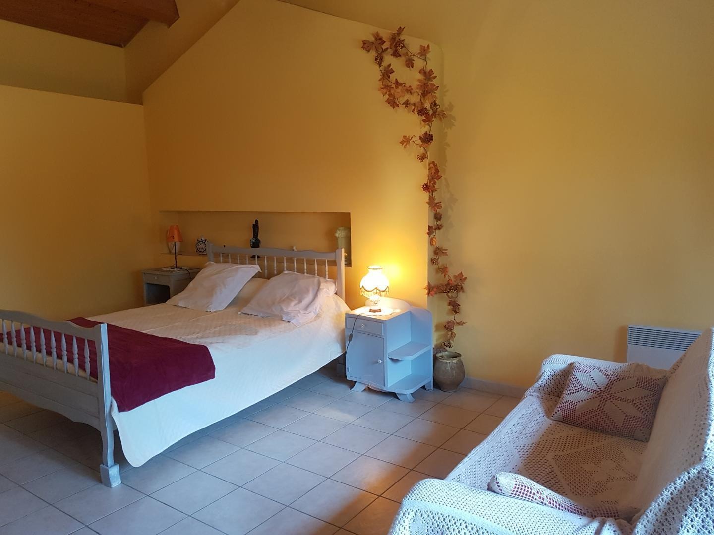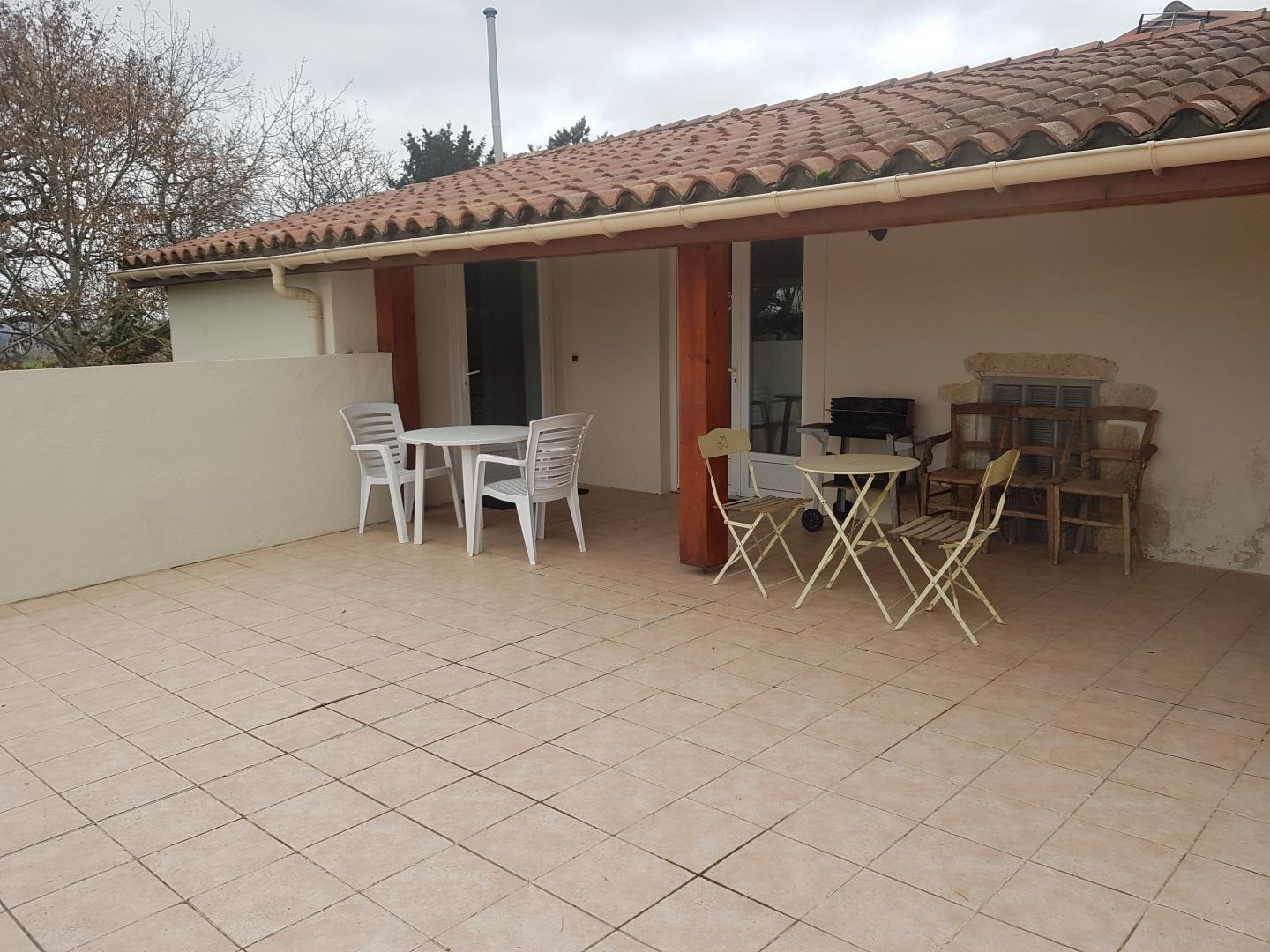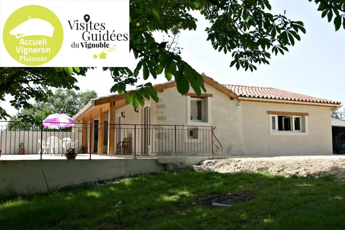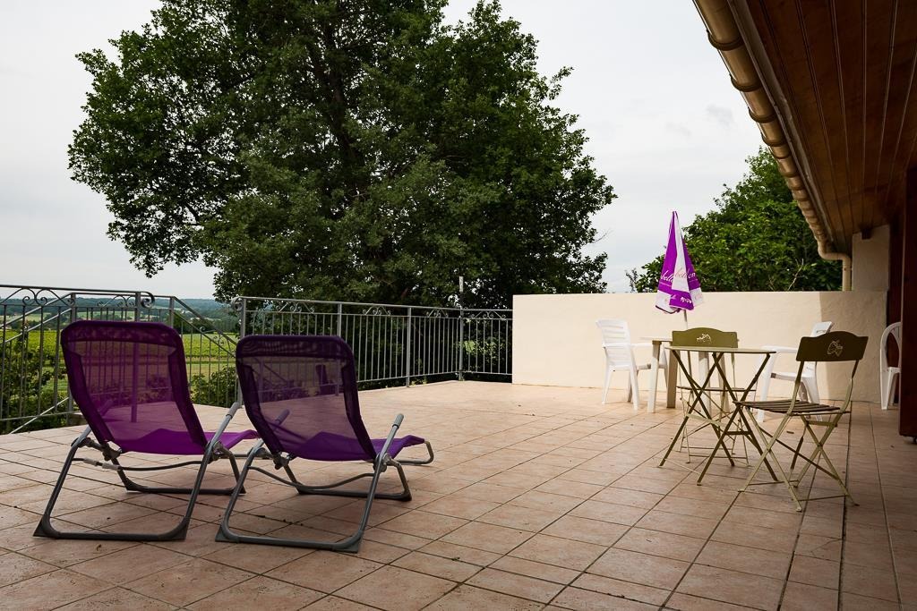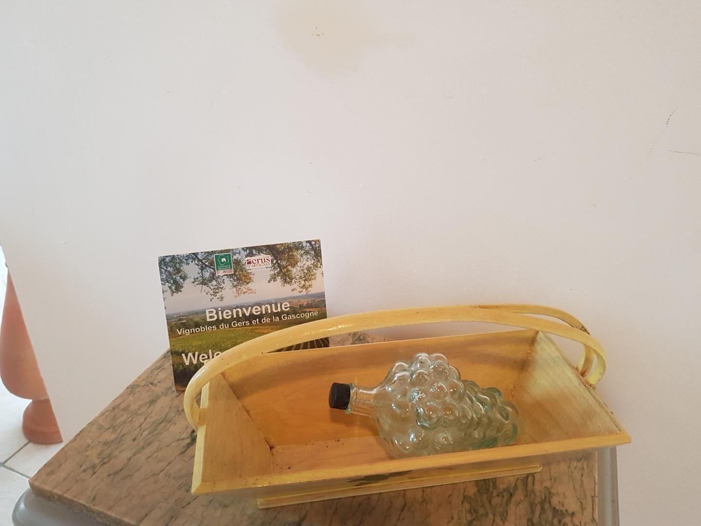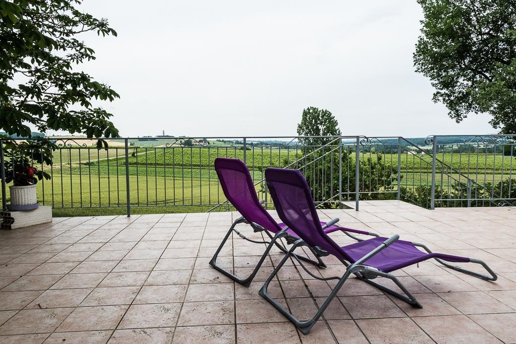 Fourcès à 1.5km. A la campagne, maison indépendante (70 m2 - rdc) donnant sur une grande terrasse de 70m² avec vue panoramique sur la vallée de l'Auzoue et le village pittoresque de Fourcès : originale bastide ronde, célèbre pour ses marchés aux fleurs, à proximité de l'habitation des propriétaires (1 ch d'hôtes), située sur une exploitation agricole et viticole: vente et dégustation de vins sur place, accueil vigneron Plaimont, basse-cour (oies, canards,lapins), à proximité du chemin de St Jacques de Compostelle (accueil Pèlerin).