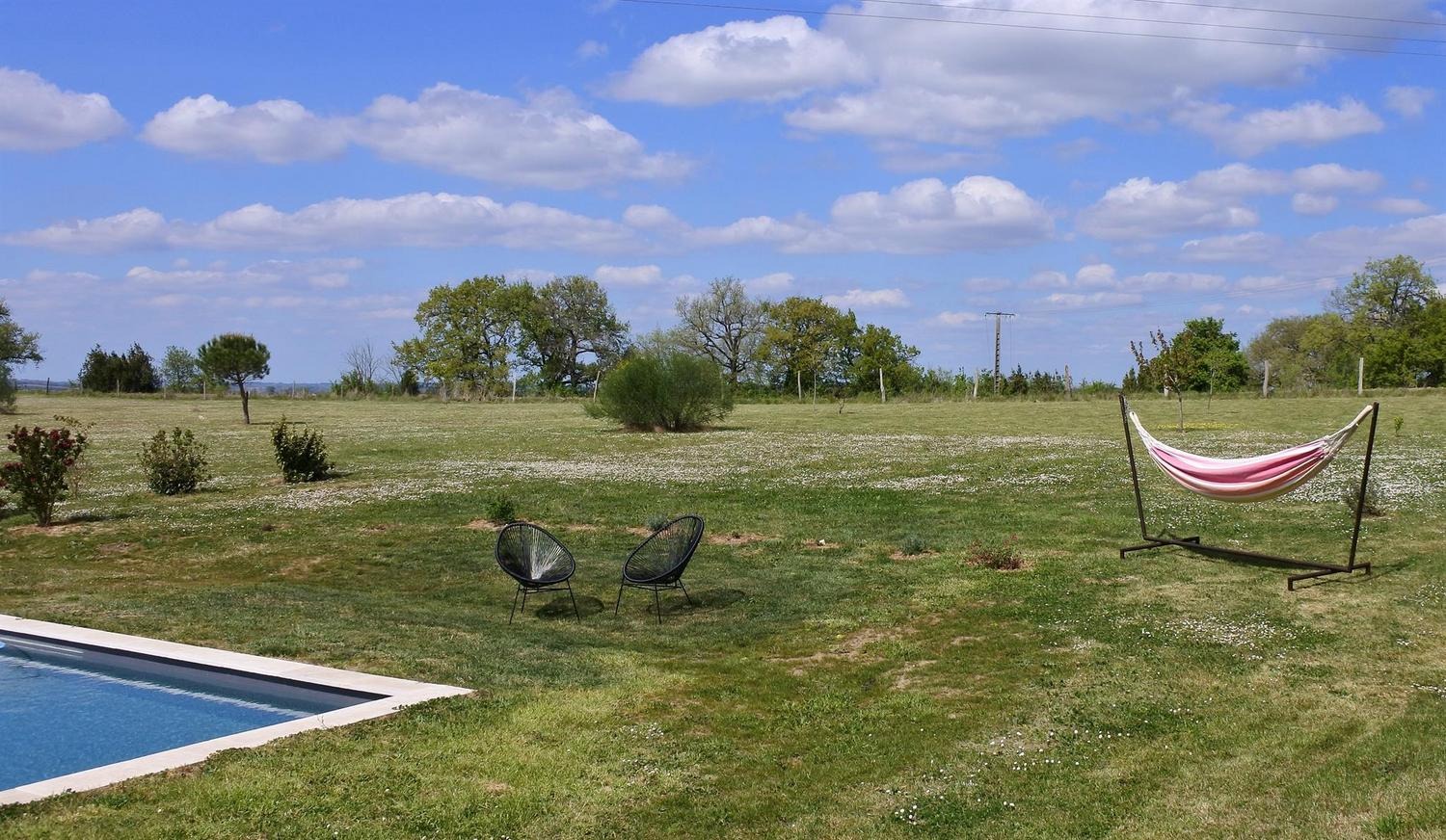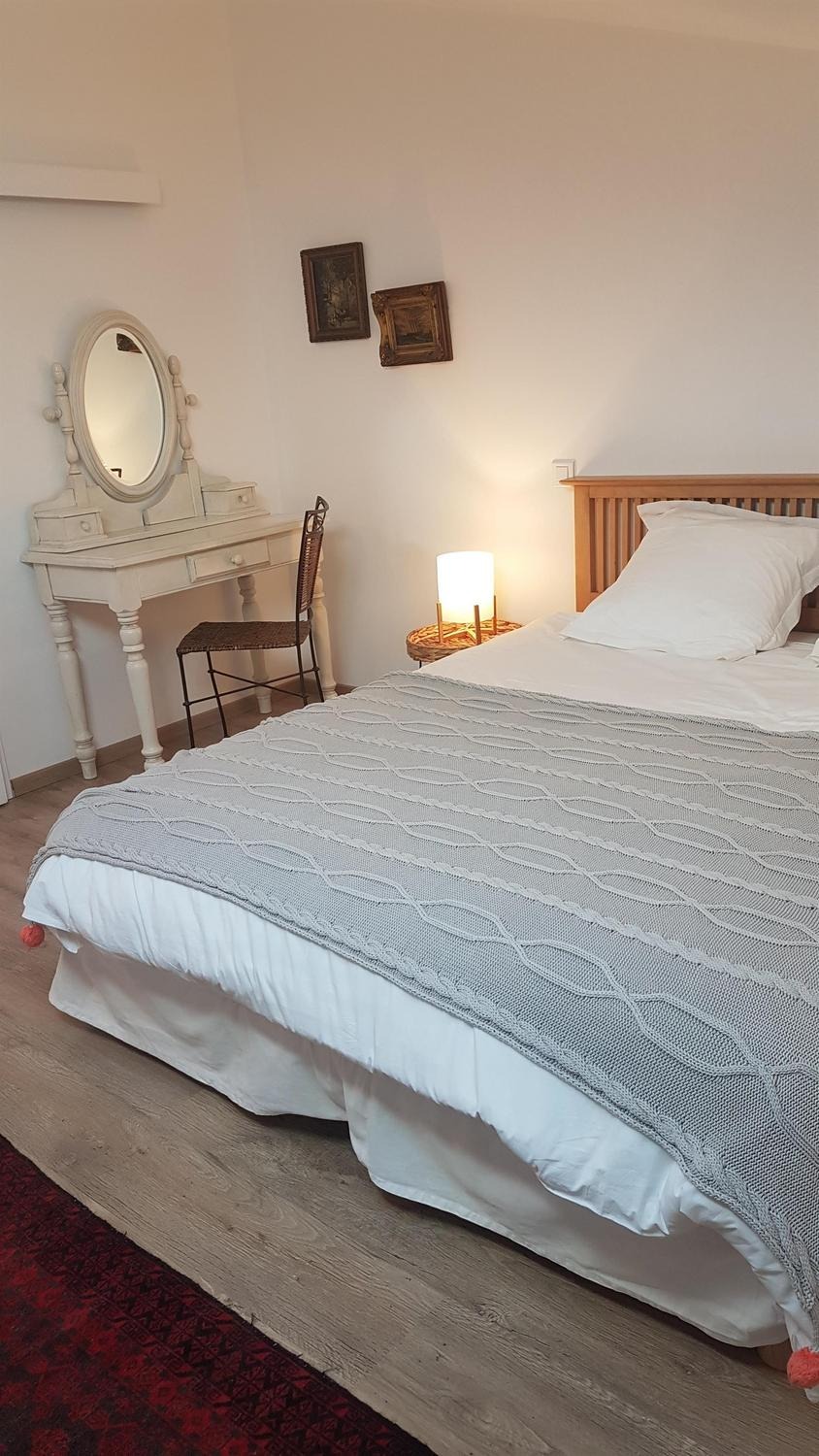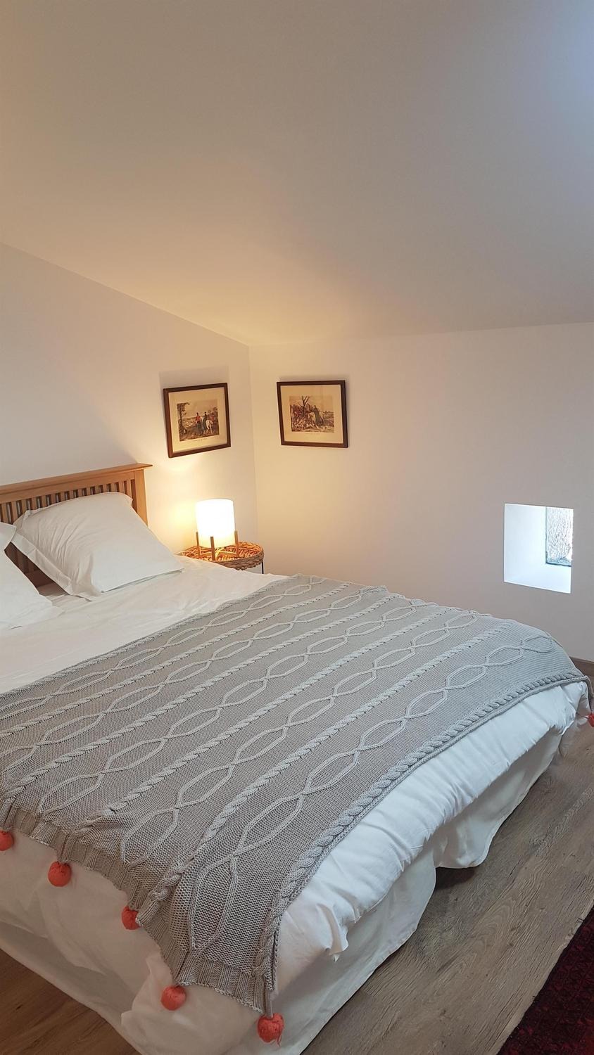Mitoyen de la maison de la propriétaire, ce petit nid douillet et à la décoration raffinée bénéficie d'un accès indépendant. Il est composé d'une pièce principale avec espace cuisine, repas et détente comprenant 1 canapé lit pour 2 personnes, poutre apparente à 1.80m, salle d'eau avec wc. A l'étage, 1 chambre mansardée avec 1 lit 160. Le gîte ouvre sur le jardin et la cour et profite d'une très belle vue sur la campagne gersoise. A l'arrière de la maison vous pourrez accèder à la piscine à partager avec la propriétaire (5x11 - prof1.30m - sécurisée par un volet roulant), sur un beau parc de 1ha longé par un sentier de randonnée que vous emprunterez pour partir à la découverte de la campagne gersoise et de ses beaux villages comme La Romieu, Gazaupouy.... Pour vous rendre le séjour agréable la propriétaire fournit les draps et le linge de toilette. Sur demande et réservation, elle vous préparera le petit-déjeuner ou un plateau repas.