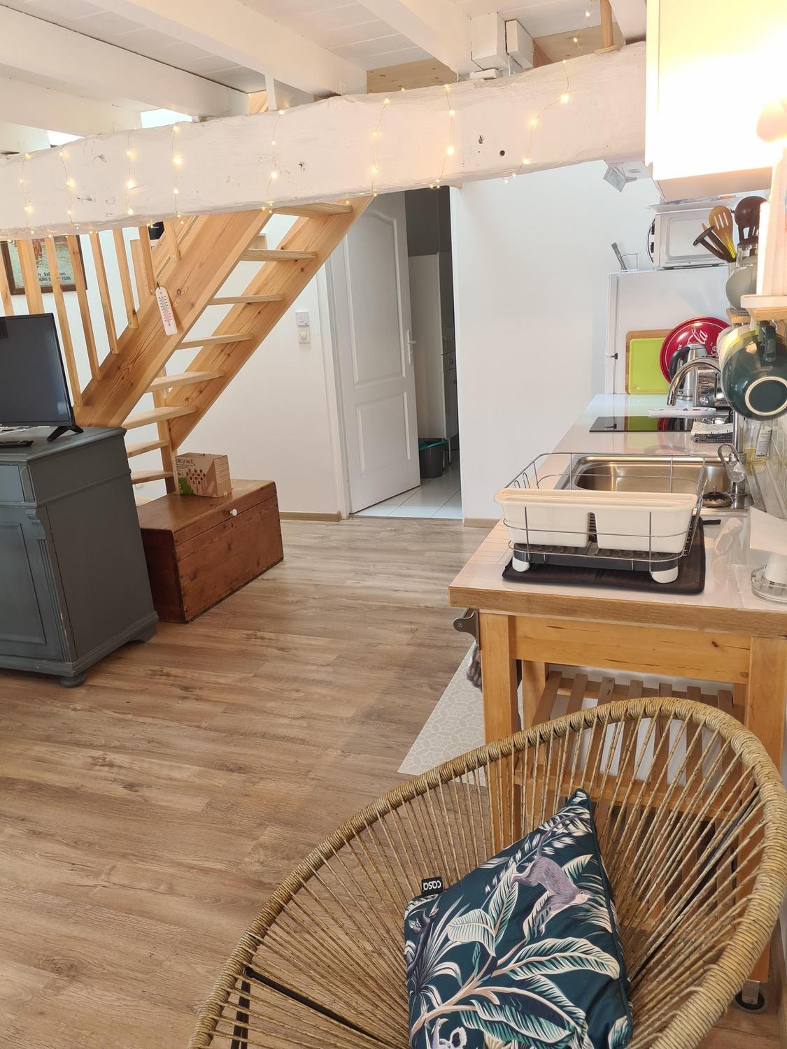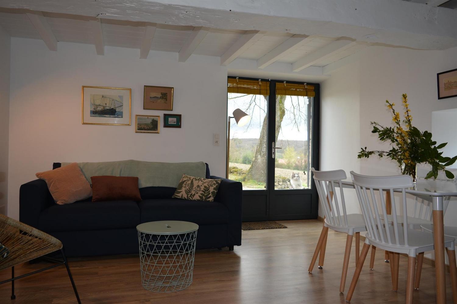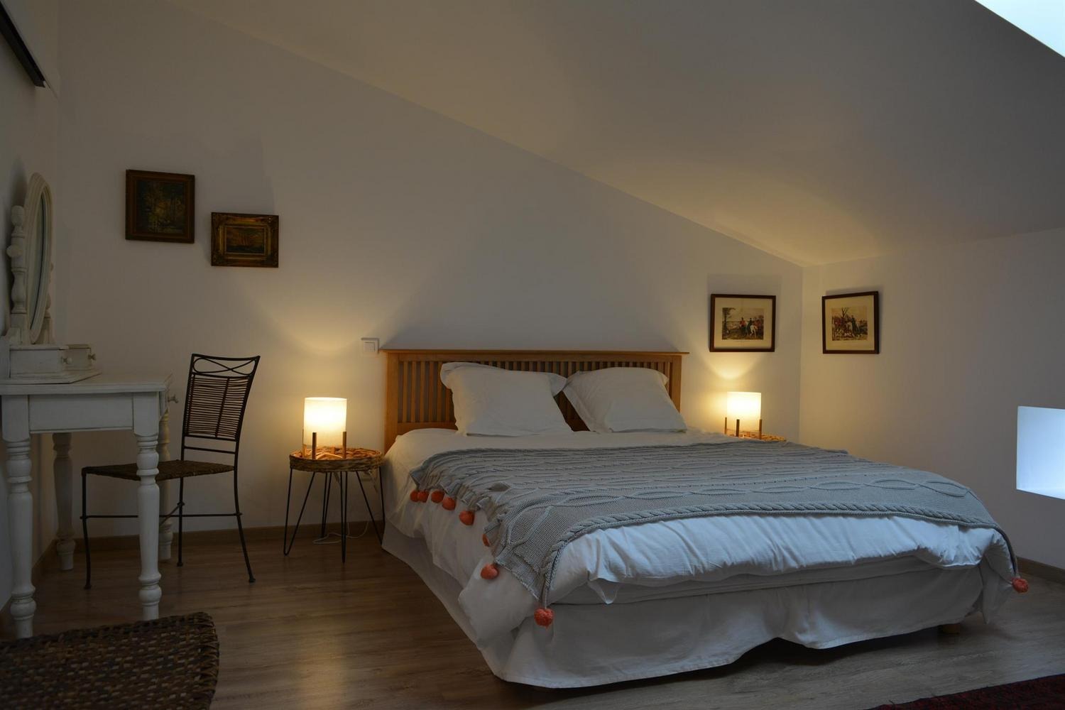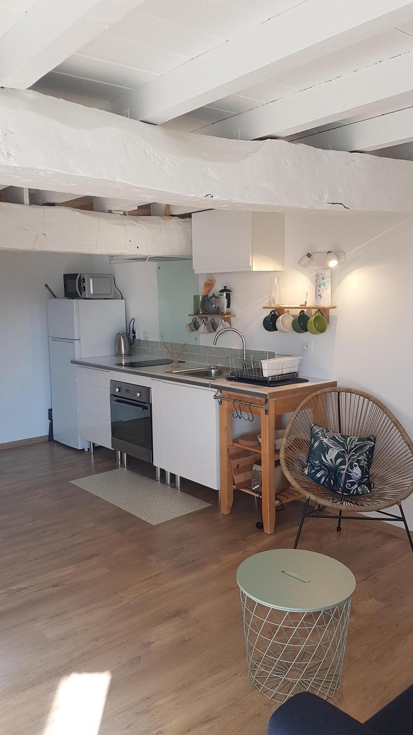Mitoyen de la maison de la propriétaire, ce petit nid douillet et à la décoration raffinée bénéficie d'un accès indépendant. Il est composé d'une pièce principale avec espace cuisine, repas et détente comprenant 1 canapé lit pour 2 personnes, poutre apparente à 1.80m, salle d'eau avec wc. A l'étage, 1 chambre mansardée avec 1 lit 160. Le gîte ouvre sur le jardin et la cour et profite d'une très belle vue sur la campagne gersoise. A l'arrière de la maison vous pourrez accèder à la piscine à partager avec la propriétaire (5x11 - prof1.30m - sécurisée par un volet roulant), sur un beau parc de 1ha longé par un sentier de randonnée que vous emprunterez pour partir à la découverte de la campagne gersoise et de ses beaux villages comme La Romieu, Gazaupouy.... Pour vous rendre le séjour agréable la propriétaire fournit les draps et le linge de toilette. Sur demande et réservation, elle vous préparera le petit-déjeuner ou un plateau repas.