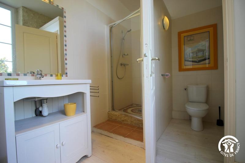 Entrée, salon/salle à manger, cuisine (accès terrasse), salle d'eau, wc chaufferie, chambre 'Victoria' (1 lit 160x200), chambre (2 lits 90x190 jumelables). A l'étage: 4 chambres avec salle d'eau, wc privatifs pour chacune : 'Diamant '(2 lits 90x200 jumelables), 'Emeraude'( 2lits 90x200 jumelables), 'Saphir' (2 lits 90x200 jumelables), 'Rubis' (2 lits 90x200 jumelables)