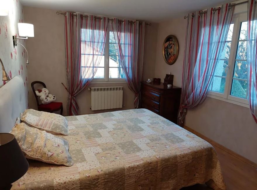 A l'étage vous aurez également 2 chambres avec 2 couchages 140 et un couchage en 90 ainsi qu'une salle de bains et un WC. Pour votre confort la maison est équipée de climatisation.