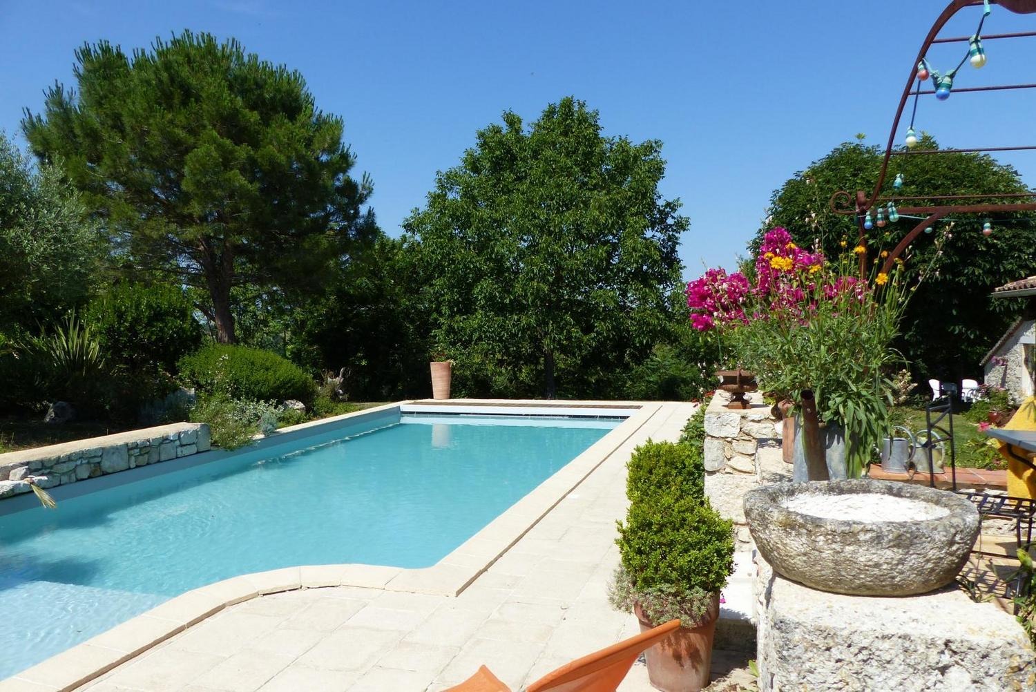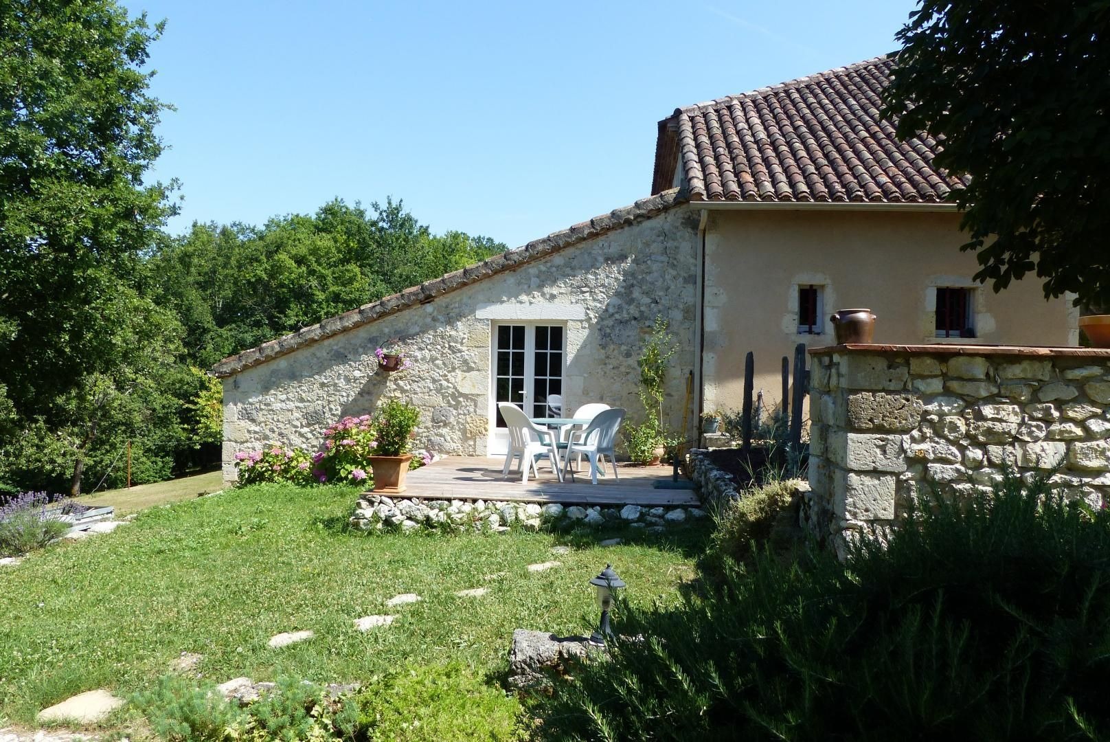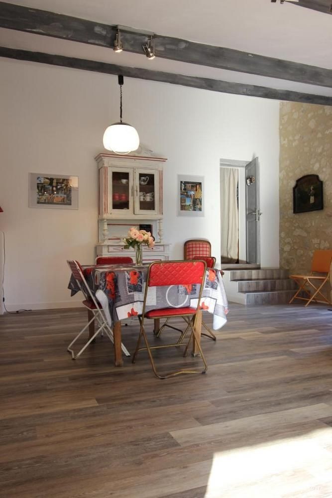 Très lumineuse, décorée avec goût et équipée de tout le confort nécessaire, pour vous assurer des vacances sous le signe de la sérénité. Mitoyen à l'habitation des propriétaires, sur une propriété de 5000m², vous profiterez de leur piscine commune au sel (10x5m - prof: 1 à 1.6m), sécurisée par une couverture, pour un bain de soleil ou un plouf, lire un livre à l'ombre dans le parc... Et si vous le souhaitez, Jean-Yves pourra vous initier au Vitrail dans son atelier (stage vitrail : nous consulter).