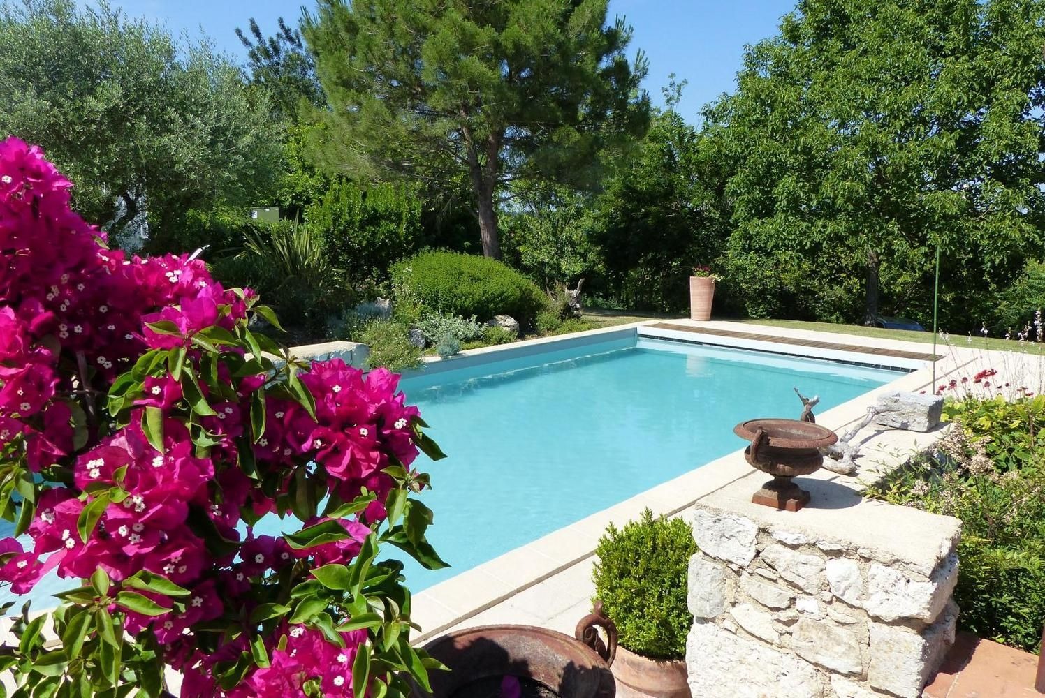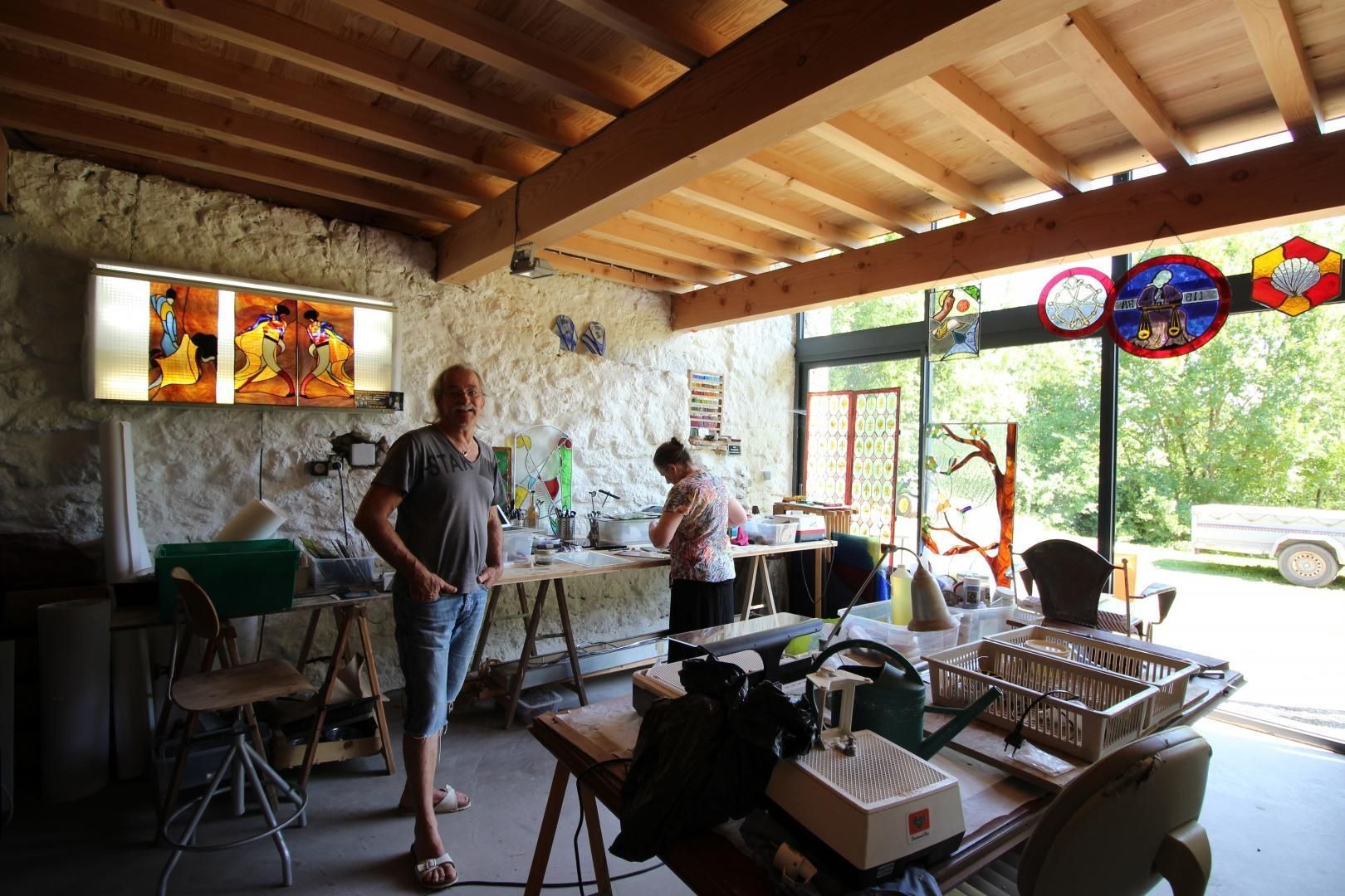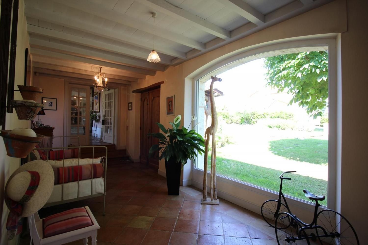 Très lumineuse, décorée avec goût et équipée de tout le confort nécessaire, pour vous assurer des vacances sous le signe de la sérénité. Mitoyen à l'habitation des propriétaires, sur une propriété de 5000m², vous profiterez de leur piscine commune au sel (10x5m - prof: 1 à 1.6m), sécurisée par une couverture, pour un bain de soleil ou un plouf, lire un livre à l'ombre dans le parc... Et si vous le souhaitez, Jean-Yves pourra vous initier au Vitrail dans son atelier (stage vitrail : nous consulter).