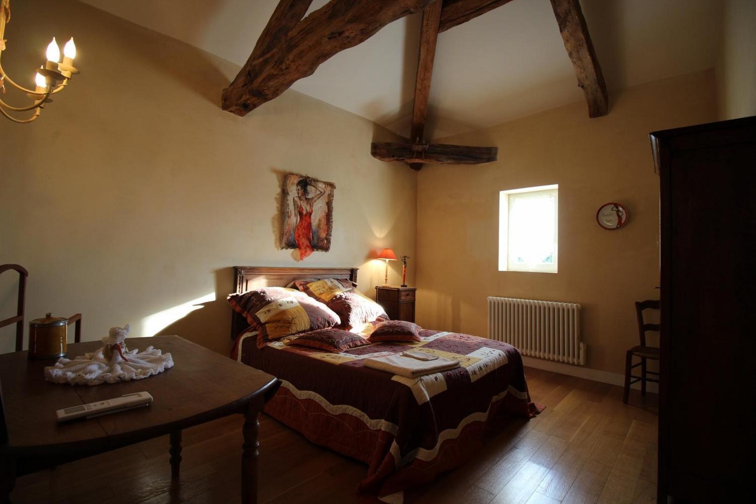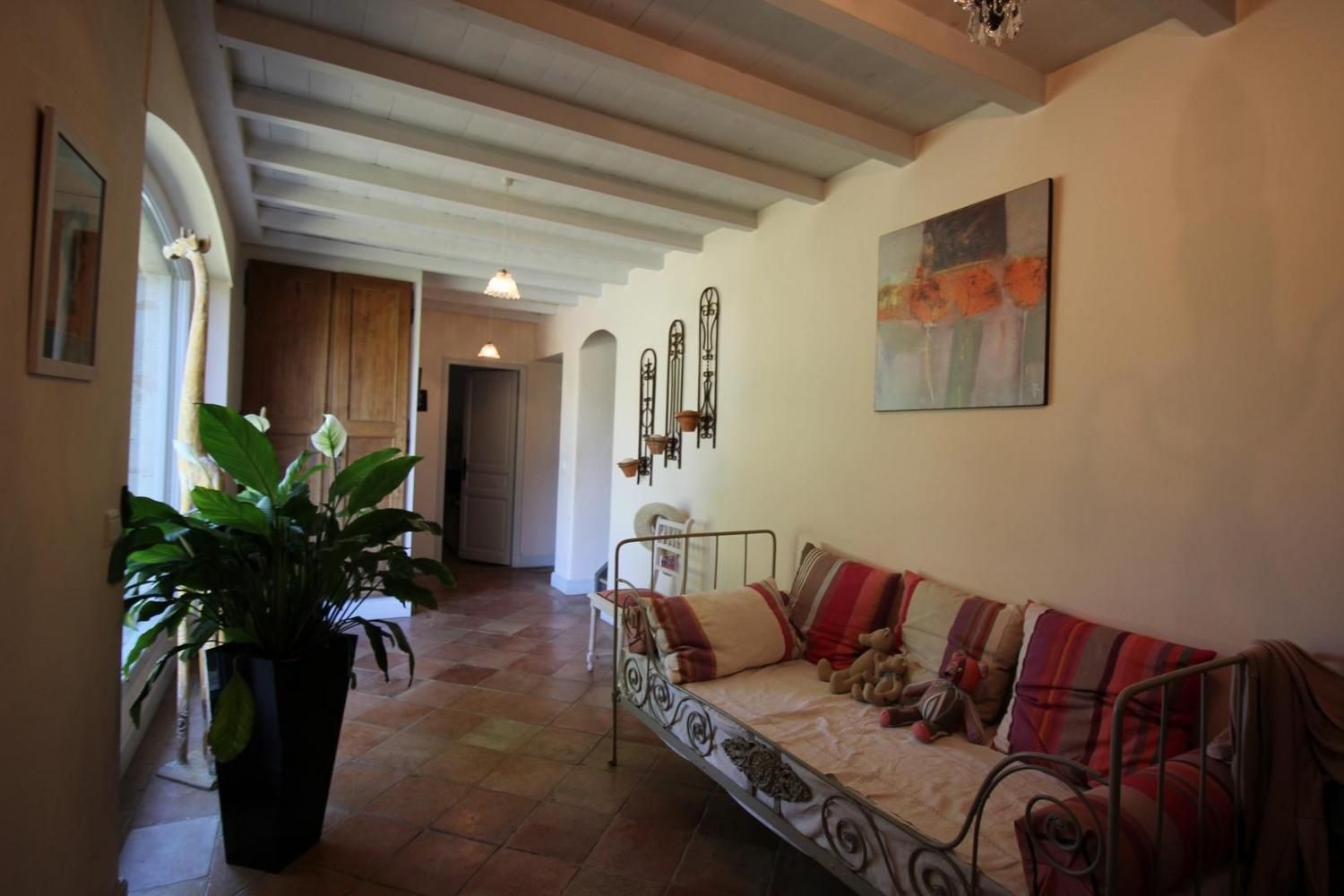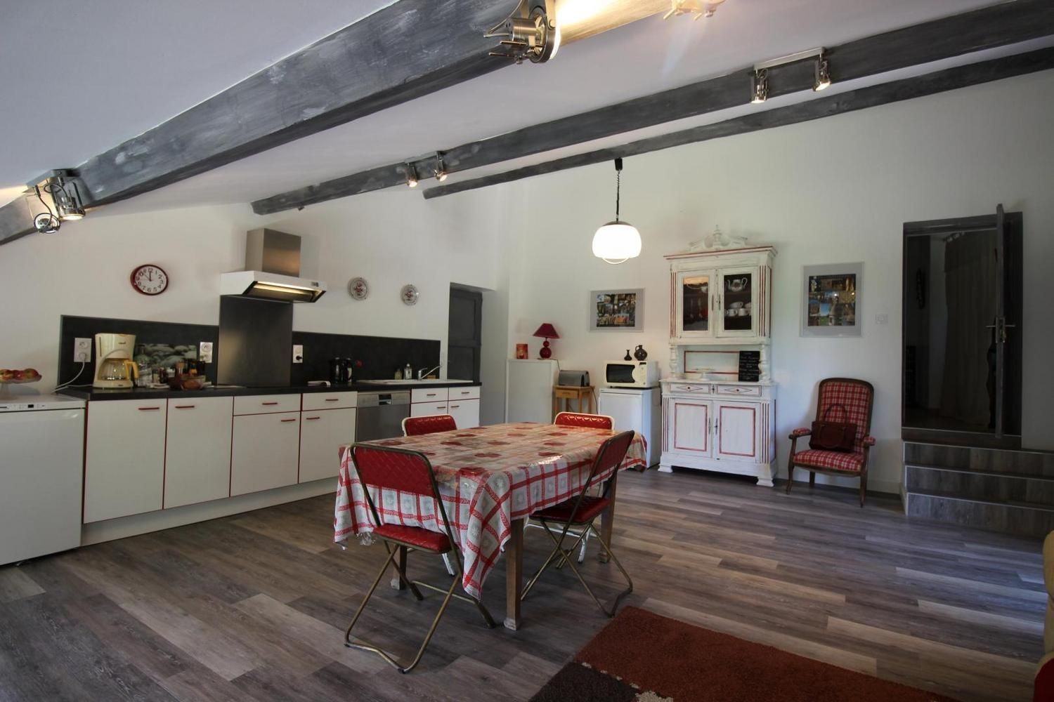 Mitoyen à l'habitation des propriétaires, gîte de 100m² aménagé en rez-de-chaussée et étage (accès par un couloir commun aux propriétaires). Séjour ouvrant sur la terrasse privative, buanderie, à l'étage: chambre 1 avec 1 lit 140 (télévision), chambre 2 avec 1 lit 140, salle d'eau avec wc. Climatisation réversible dans les chambres.