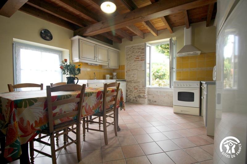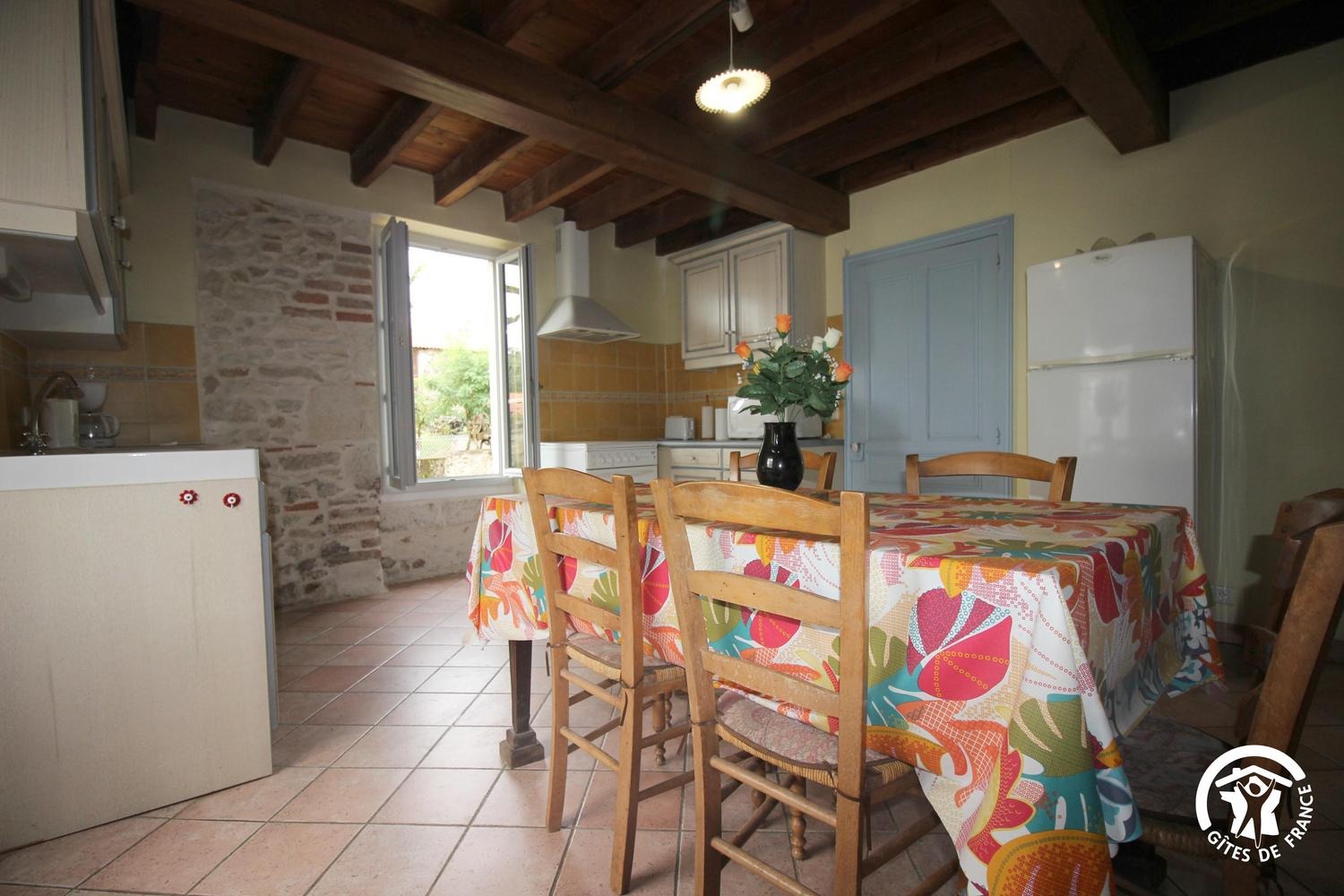 Cuisine avec espace repas, salon, wc, buanderie (coin chaufferie). A l'étage vous trouverez 2 chambres avec 2 lits 140, 1 lit 90, une salle d'eau avec wc.
