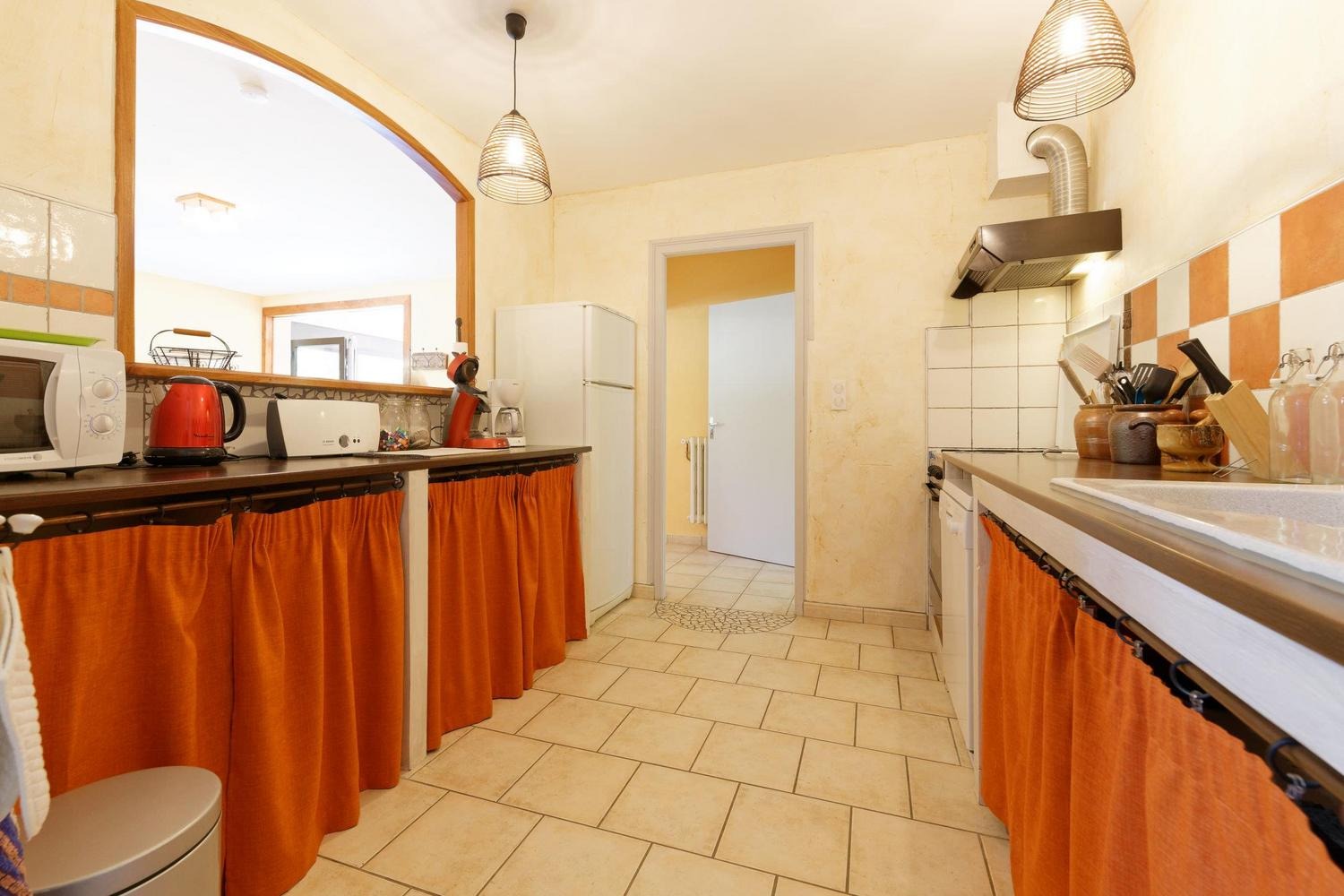Cuisine indépendante, salle à manger, salon, baby-foot, 4 chambres (2 lits 140, 5 lits 90 dont 2 jumelables), wc indépendant, salle d'eau. En annexe : terrasse couverte avec bar, douche et wc.