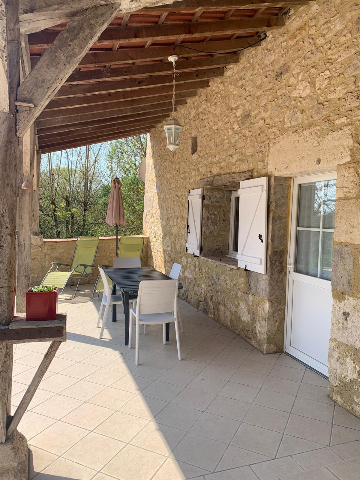 Au cœur de la campagne à proximité de l'exploitation agricole familiale, découvrez cette petite maison en pierre restaurée avec 2 terrasses dont une couverte.