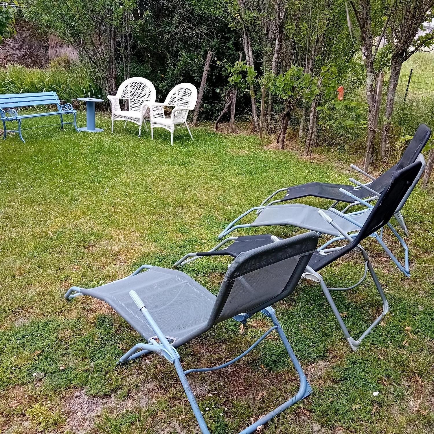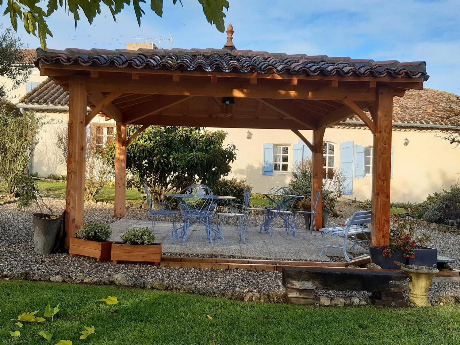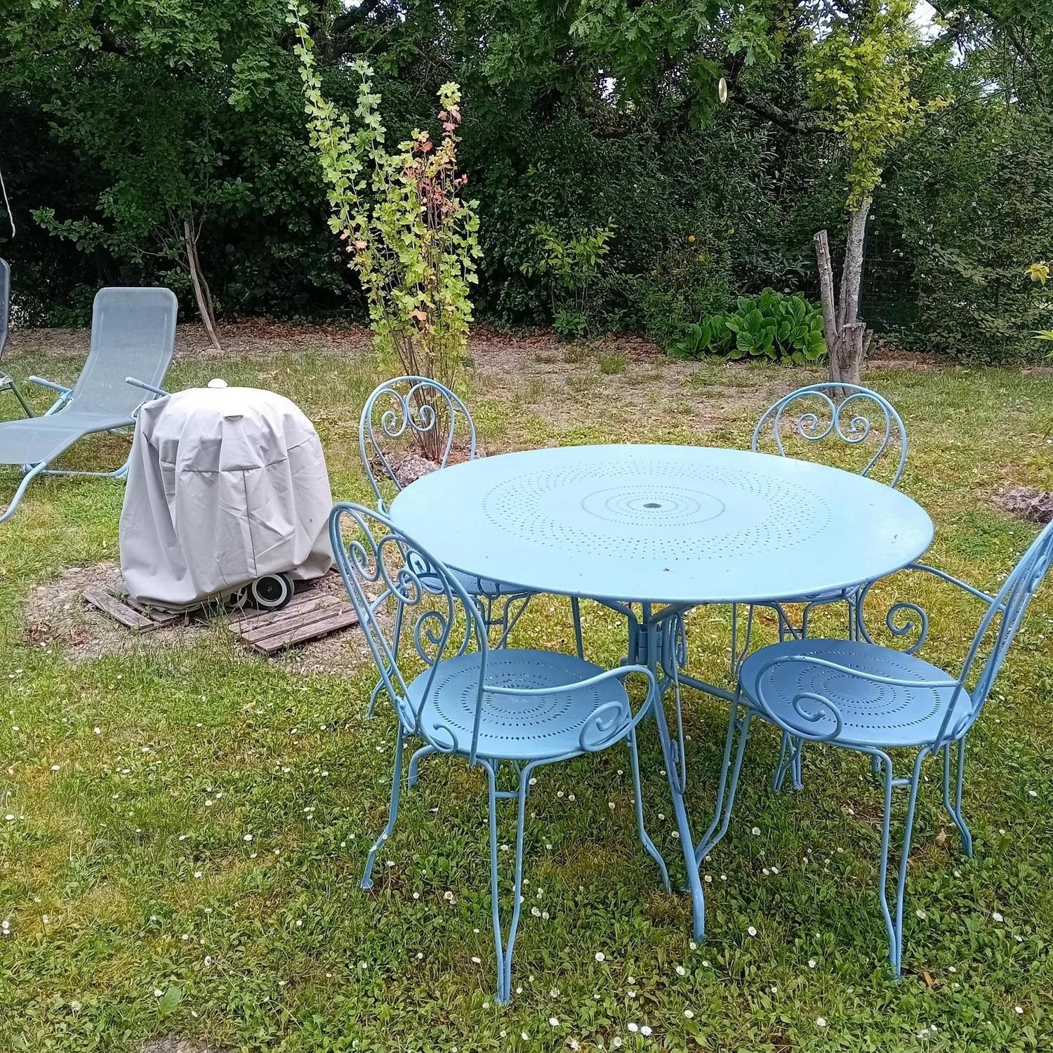 Sous vos fenêtres, le verger vous accueille avec une table, des chaises et un barbecue pour vos repas, ainsi que des chaises longues et 2 fauteuils, à proximité d'un beau puits sécurisé et de la piscine hors-sol.
