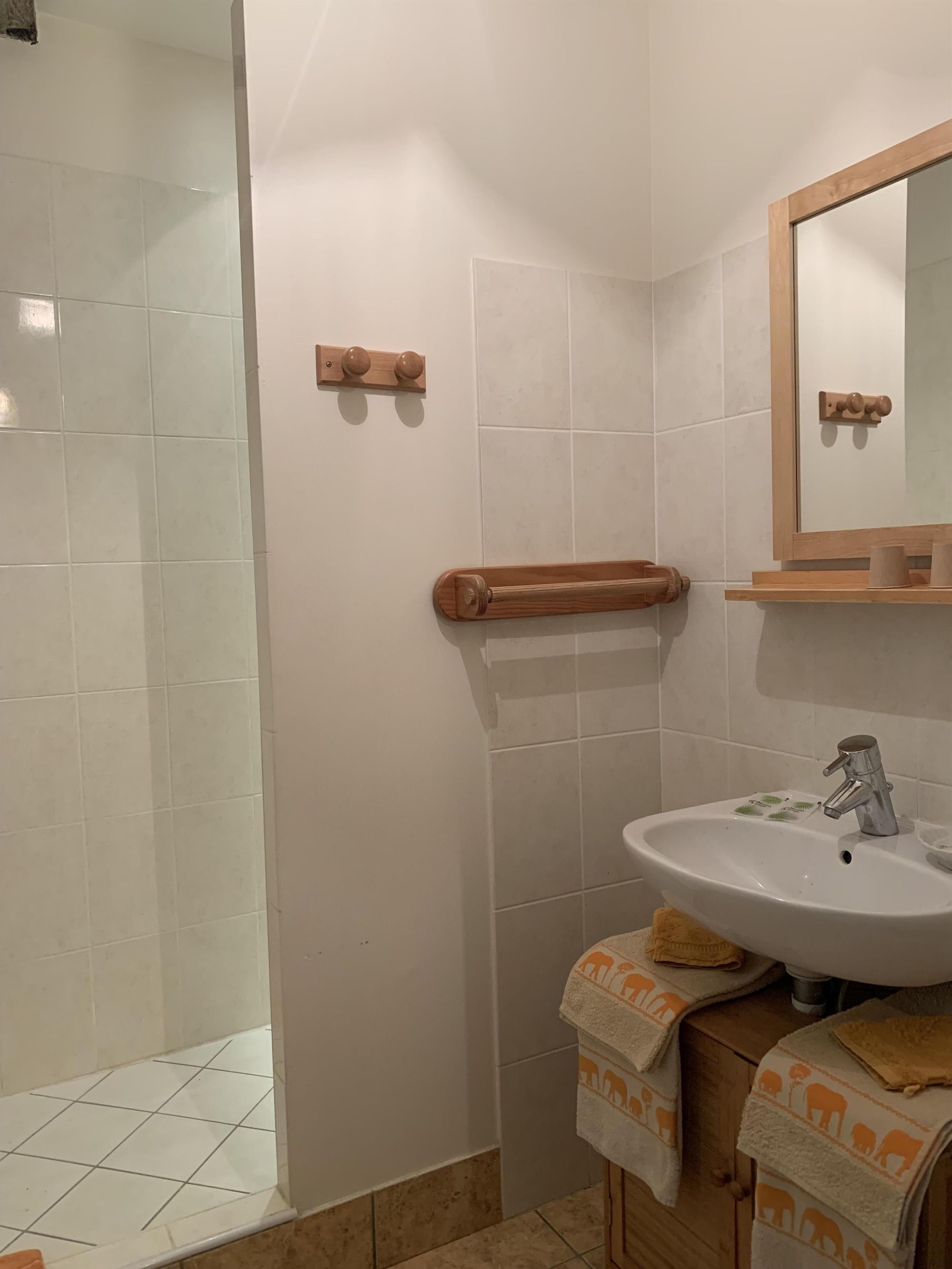 Vous dormirez dans 2 chambres spacieuses à la décoration soignée, disposant chacune d'une salle d'eau et d'un wc séparé: Sentier des feuilles avec 1 lit 160 et 1 lit 120, Piste de Tombouctou avec 1 lit 160 (chaise de douche dans chaque chambre ). 2 lits bébé, baignoire et rehausseur sur demande.