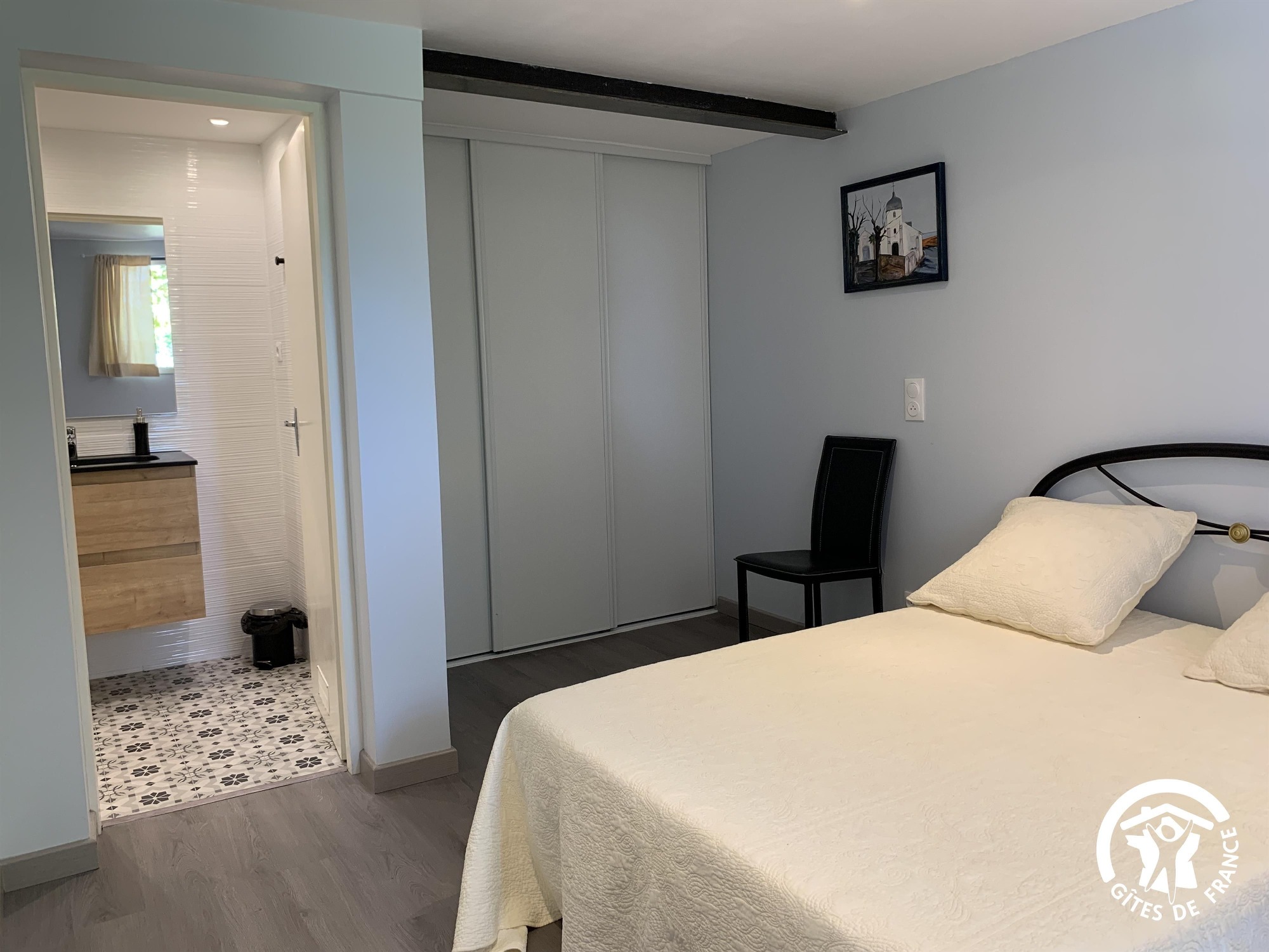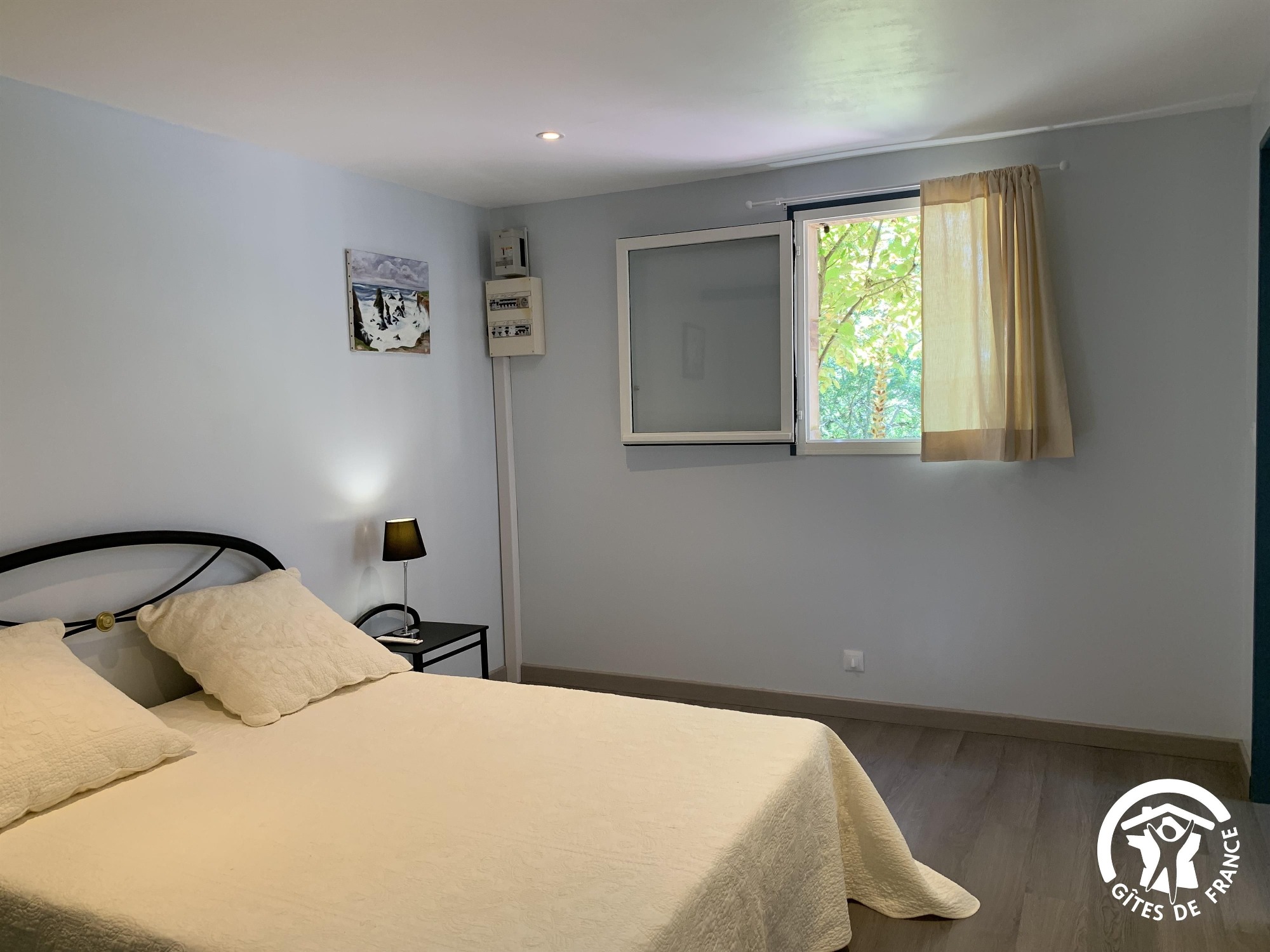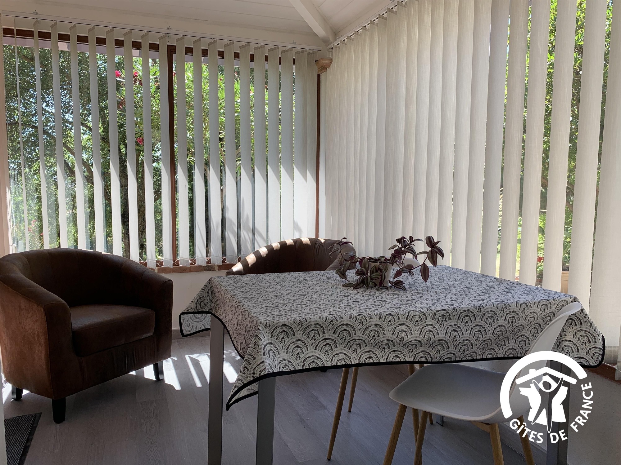 Le gîte se compose d'une véranda aménagée en espace repas et détente, une cuisine, une chambre avec 1 lit 140 et sa salle d'eau avec wc.