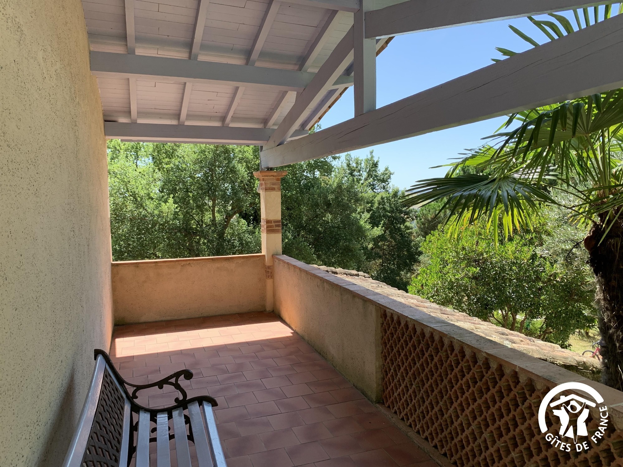 Ce petit gîte cosy aménagé avec goût ouvre sur une terrasse couverte et une jolie vue sur le parc arboré et aménagé de 3000m2 pour profiter de moment de détente tout en appréciant la vue sur les vallons gersois, ou pour une balade sur la propriété.