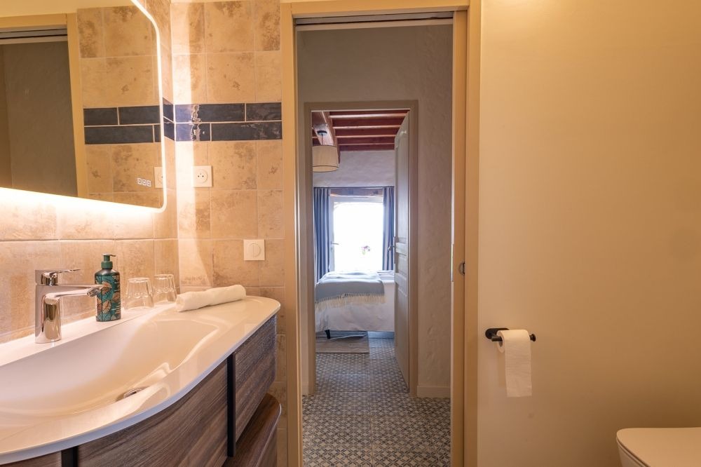 Le séjour cosy et la cuisine entièrement équipée, s’ouvrent sur une grande baie vitrée d’où vous pourrez admirer la vue exceptionnelle et toujours changeante. Les 4 chambres, sobres et raffinées, avec salle de bain individuelle et wc, dont une avec baignoire, bénéficient toutes de cette même vue fabuleuse. La literie haut de gamme, vous fera retrouver le plaisir des longues nuits de sommeil. Vous pourrez déjeuner ou dîner en intérieur ou sur la terrasse principale du Mas face au jardin