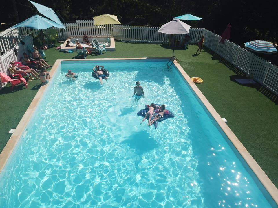 Taybosc à 500m : Appartement aménagé au rdc de la maison des propriétaires (55m2), ouvrant sur un espace vert privatif (1500m2)avec terrasse couverte (12m2), sur la propriété(à 400m): Camping à la Ferme, Auberge, piscine commune et clôturée (18x7 - prof: 0.9/2.2) juillet et août, équipements de loisirs communs : aire de jeux, pataugeoire.