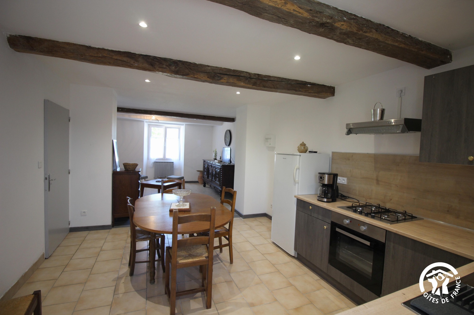 Le gîte dispose d'une cuisine ouverte sur un séjour lumineux, parfait pour partager des moments conviviaux en famille ou entre amis. La cuisine, équipée , vous permettra de préparer des repas délicieux avec les produits frais locaux.
