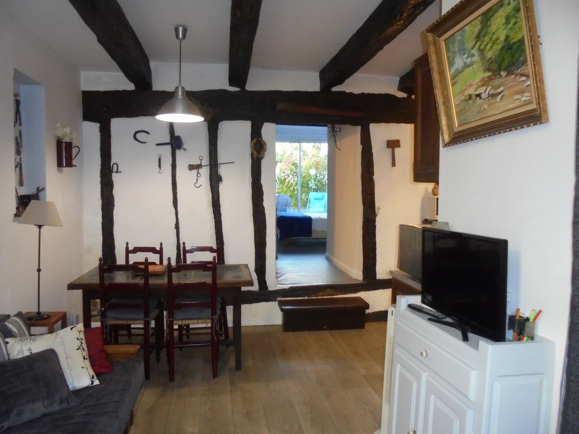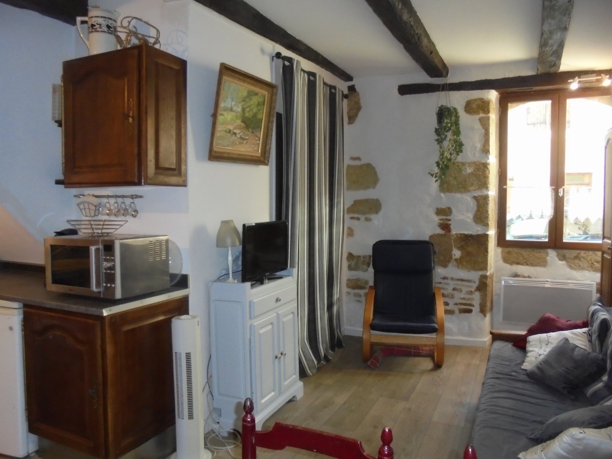 Les vacances, votre travail ou une cure thermale vous conduisent dans notre jolie bastide du Gers, nous vous proposons notre agréable T2 de 40 m2, traversant, au RC d'une maison du centre ville de Fleurance. Le gîte est composé :