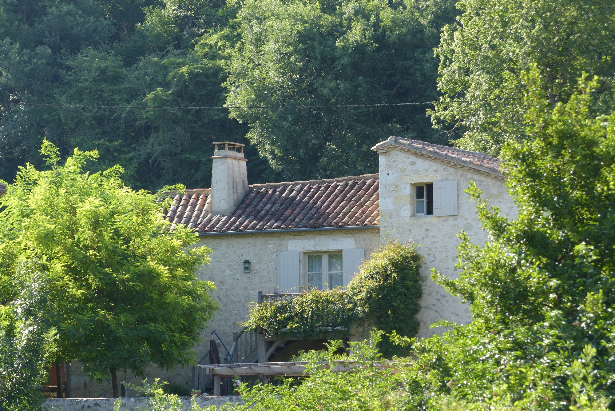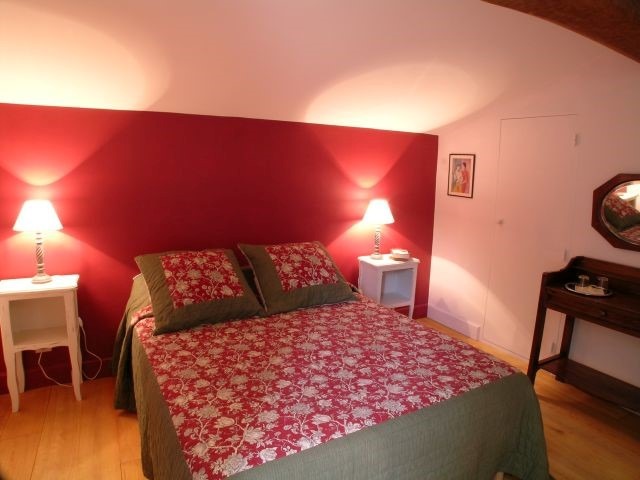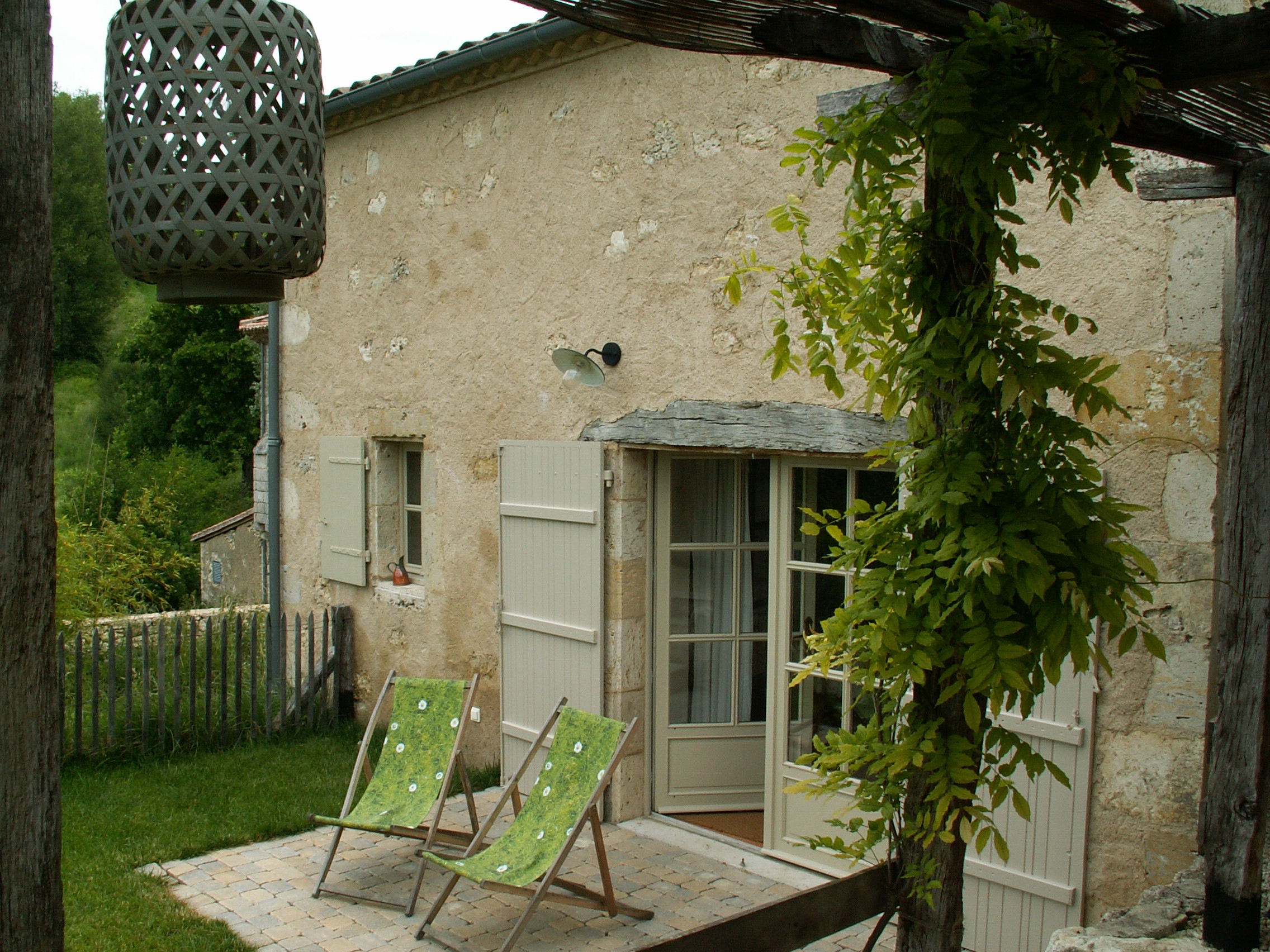 A l’extérieur : un jardin privé avec terrasse et pergola, un parking couvert et un accès direct à la piscine (12mx4m) commune avec les deux chambres d’hôtes du moulin.