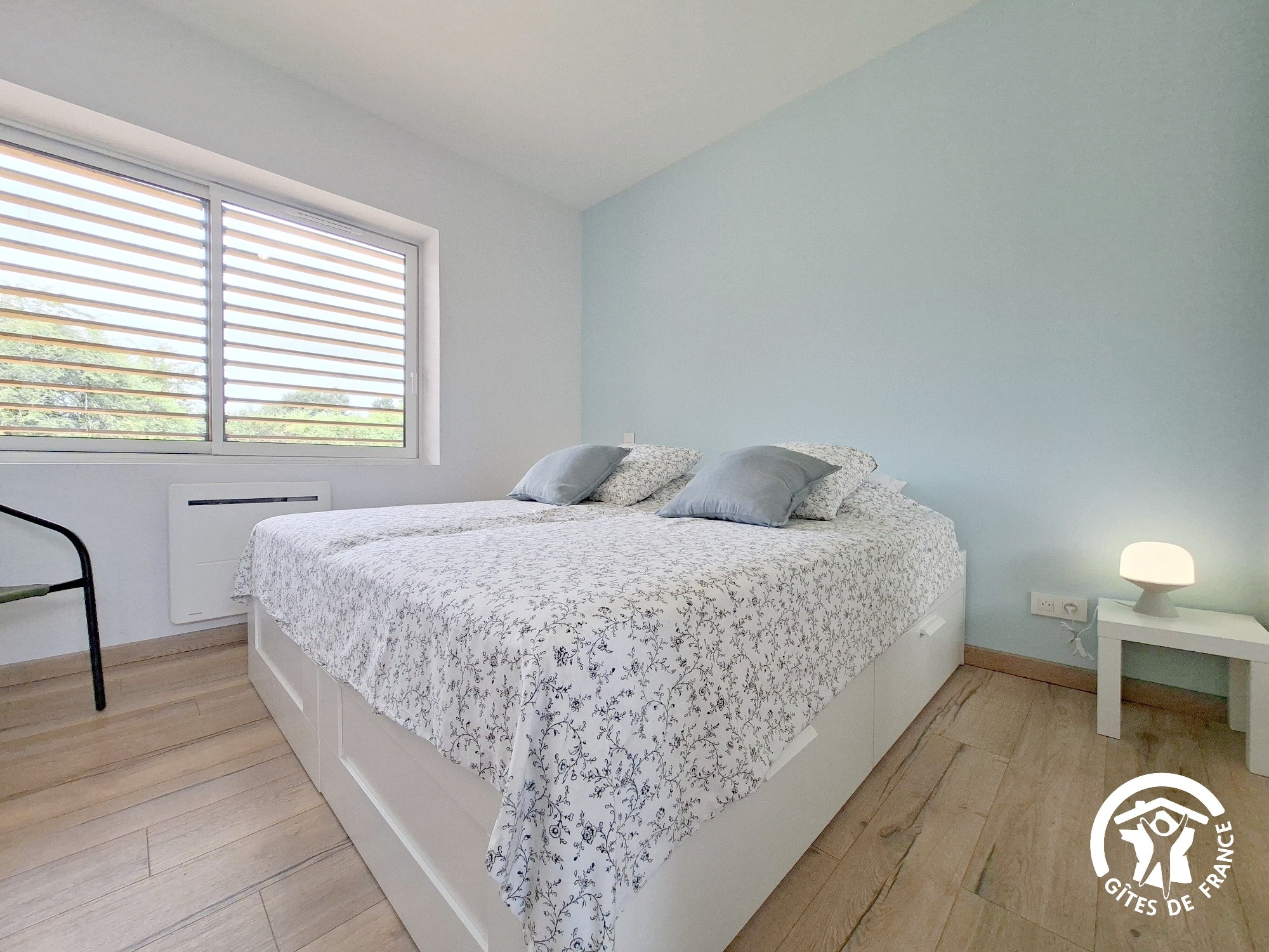 • Une chambre avec 2 lits simples jumelables (90 cm),