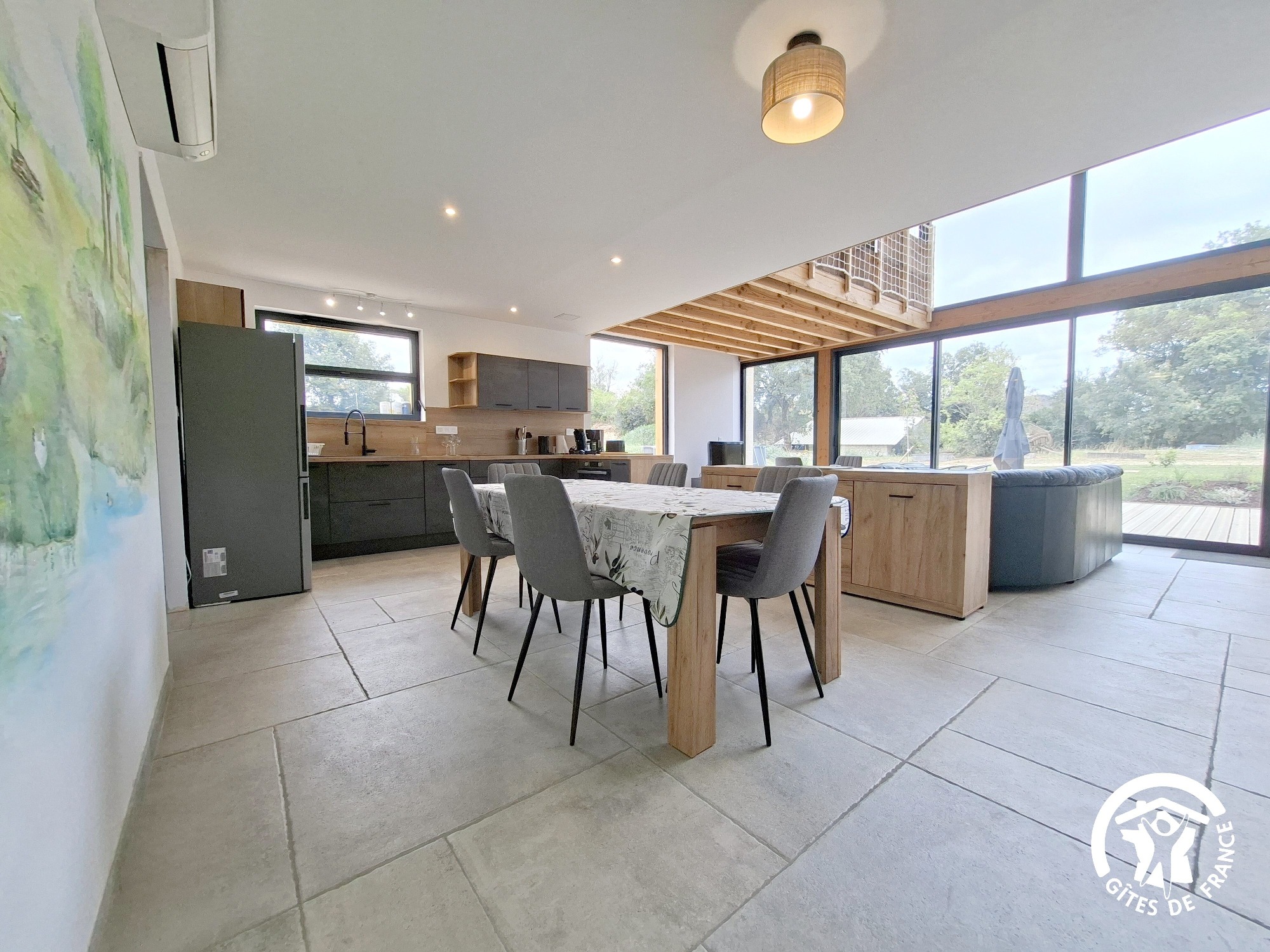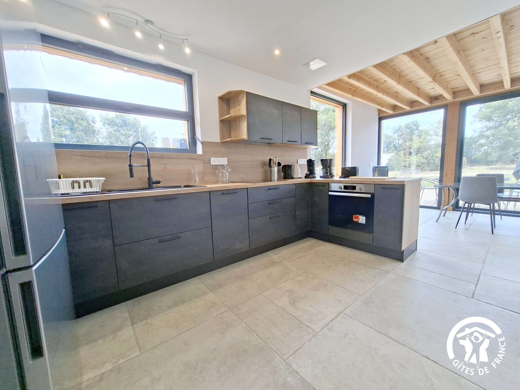 • Une cuisine ouverte moderne et toute équipée,