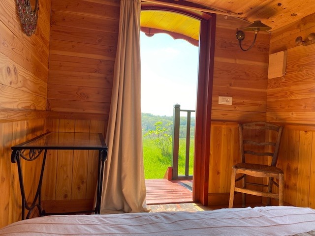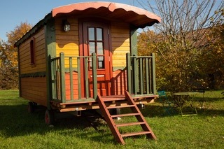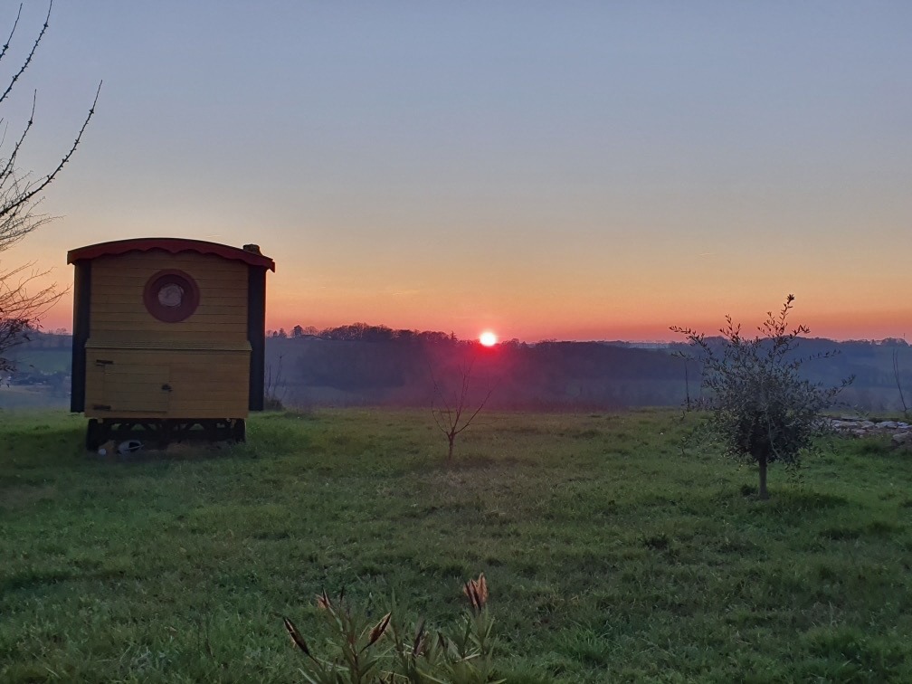 Entre Condom et Montréal-du-Gers, Charlotte est une charmante roulotte en bois. Elle est située le long du chemin de st Jacques de Compostelle, entre Condom et Montréal (à 3kms de ce village), dans un lieu calme et ressourçant.