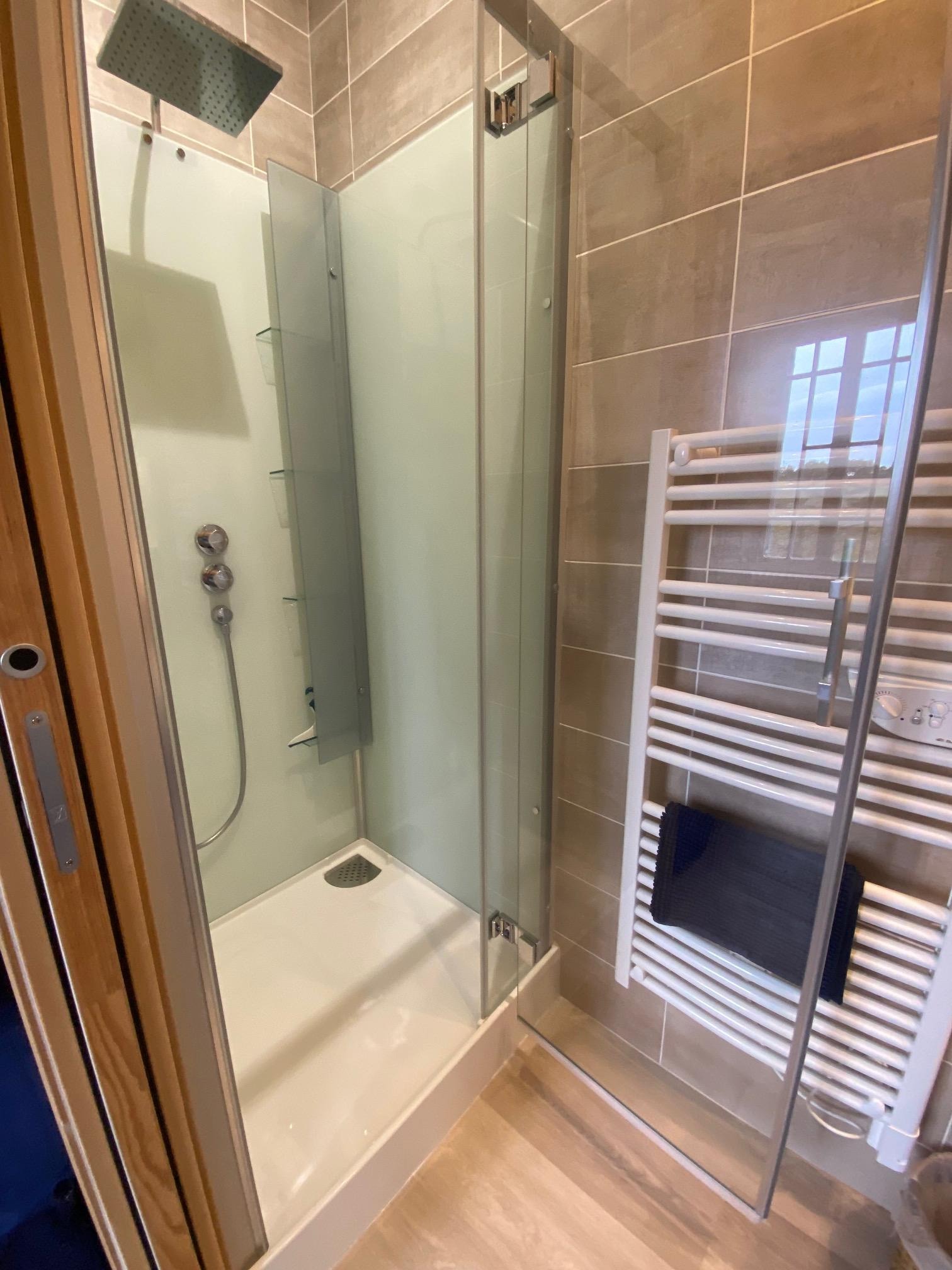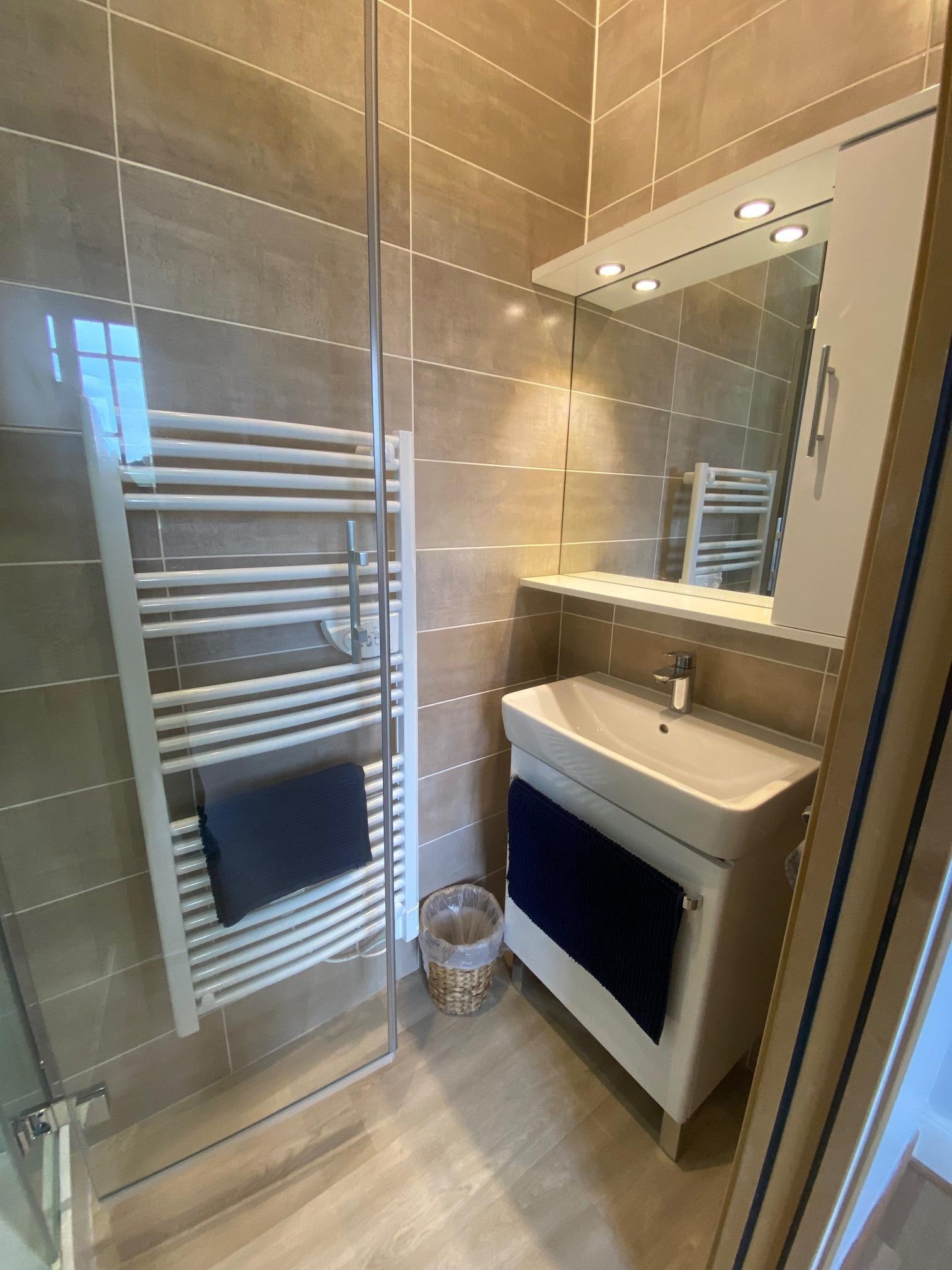 Séparées par un pallier aménagé en espace détente, les chambres (non-fumeur) sont meublées d'un lit en 140/200, d'une armoire et d'un confortable fauteuil. Elles disposent d'une salle d'eau comprenant une cabine douche avec lavabo et d'un WC séparé avec lave main. Elles sont équipées du wifi.