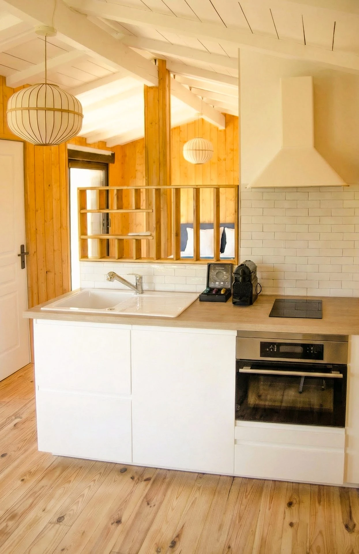 À l’intérieur, tout est pensé pour le confort : une literie de grande qualité pour des nuits profondes et reposantes, une salle de bain avec douche, des WC séparés, ainsi qu’une cuisine équipée avec réfrigérateur, plaque à induction, four et machine à café.