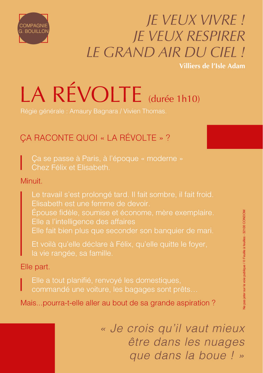 Et voilà qu’elle déclare à Félix, qu’elle quitte le foyer, la vie rangée, sa famille.