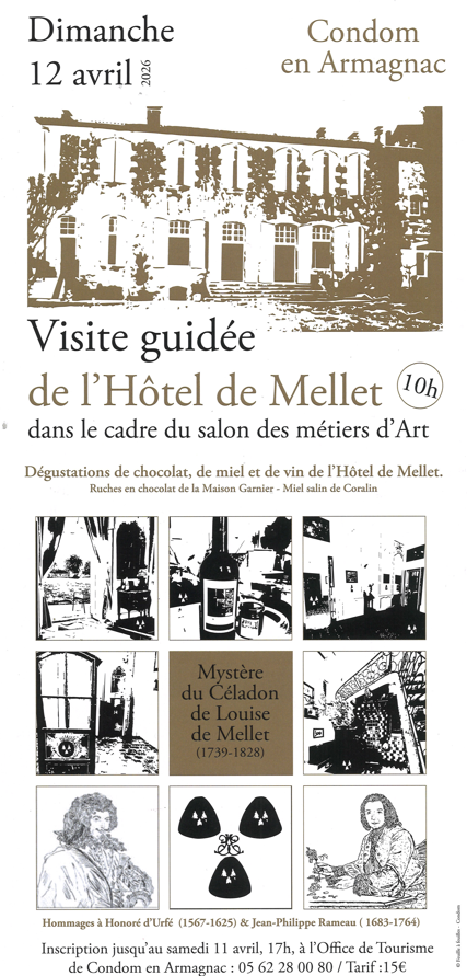 A l'occasion du salon régional des métiers d'art, les propriétaires de l'Hôtel Particulier de Mellet vous ouvrent les portes de cet édifice condomois pour une visite guidée exceptionnelle le dimanche 12 avril à 10h.