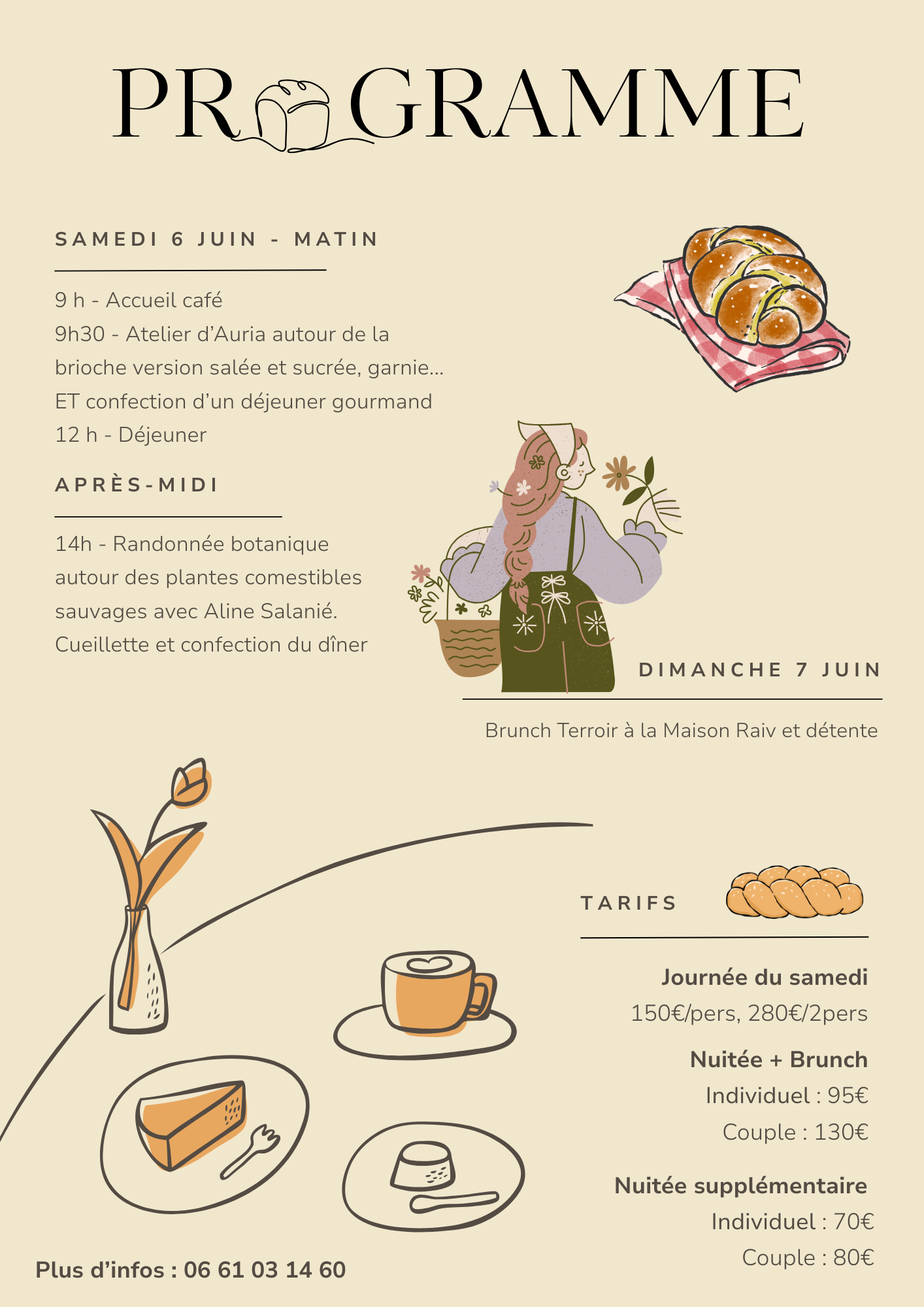 Atelier Brioche salé et sucré avec Auria Dirat et randonnée gourmande avec Aline Salanié.