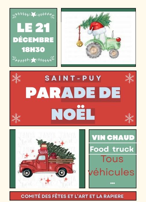 Le comité des fêtes ainsi que l’art et la rapière…. Vous attendent à partir de 18h30, pour la PARADE DE NOËL au cœur du village de Saint-Puy.