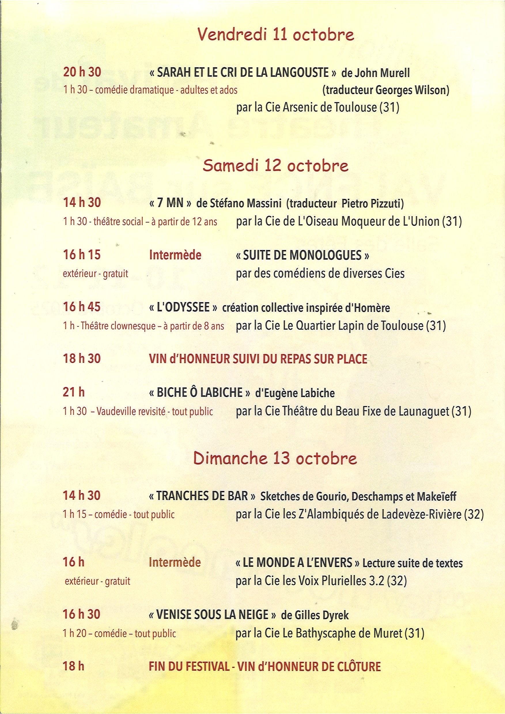La 9ème édition se déroule du 10 au 12 octobre, proposée par le Castella.
