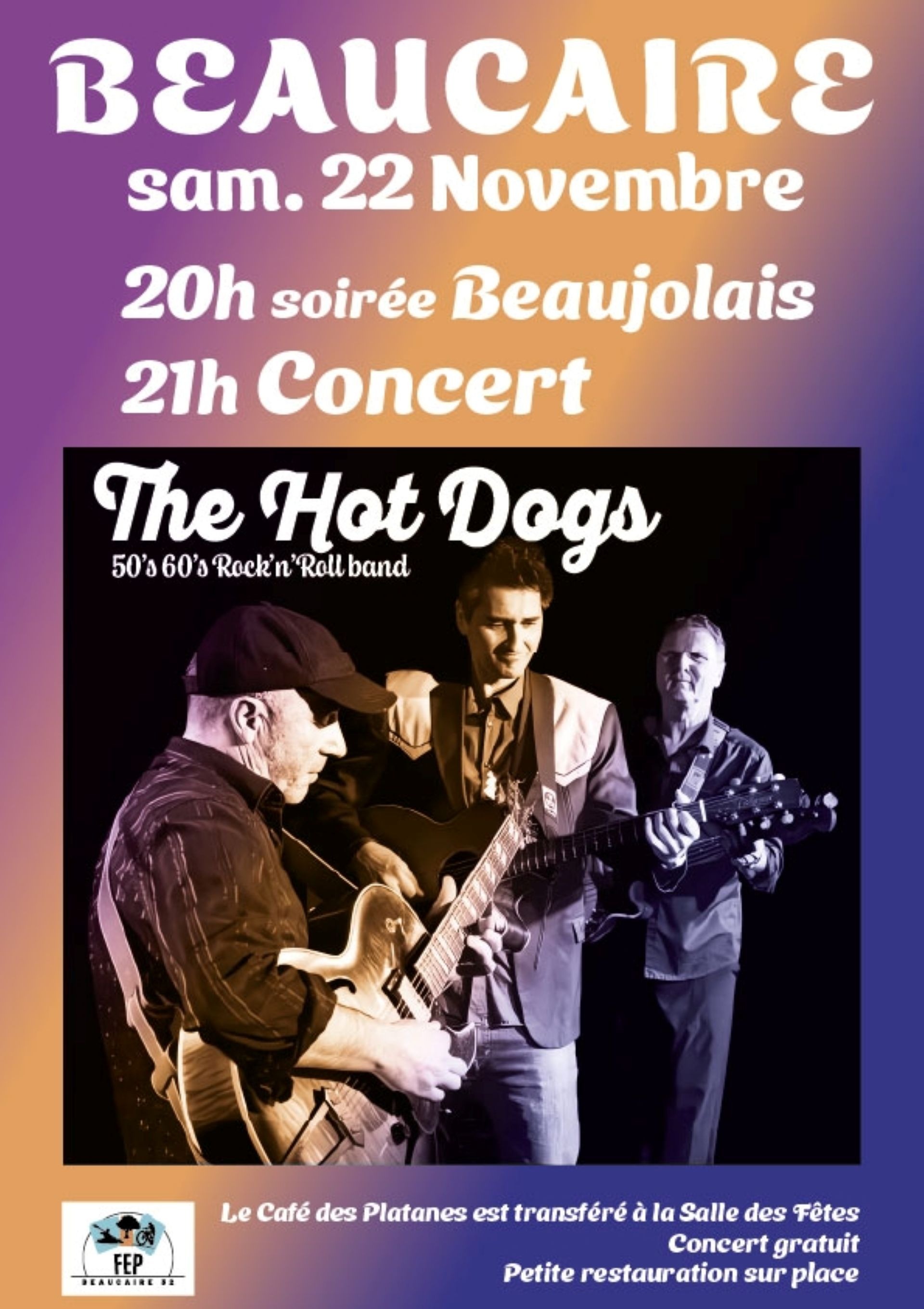 Oenologie et musique s'allient pour cette soirée de découverte du nouveau beaujolais et de ce groupe The Hot Dogs à la salle des fêtes de Beaucaire dès 20h.